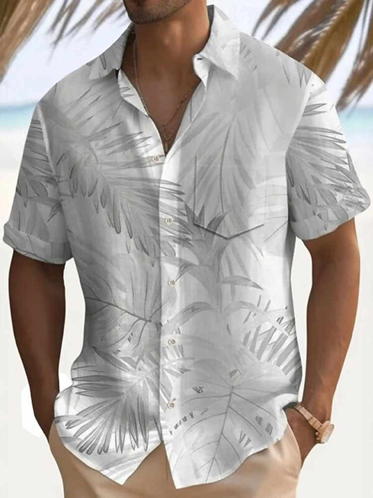 Pluslx Men's Palm Leaf Casual Shirt Summer Hawaiian Shirt