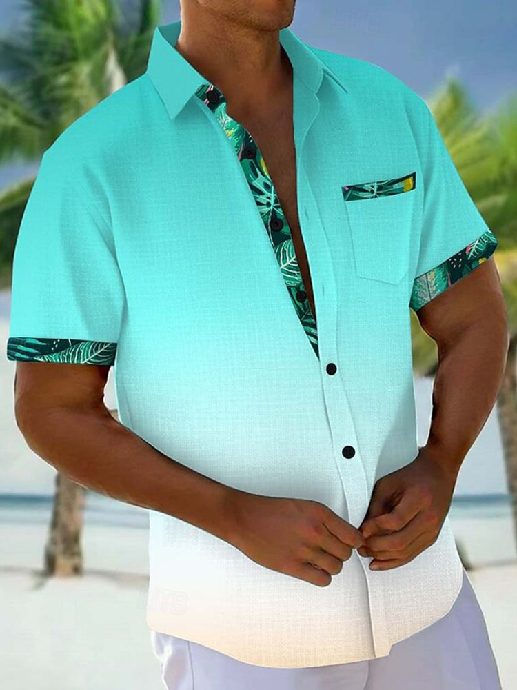 Pluslx Men's Gradient Color Palm Leaf Tropical Plants Hawaiian Shirt