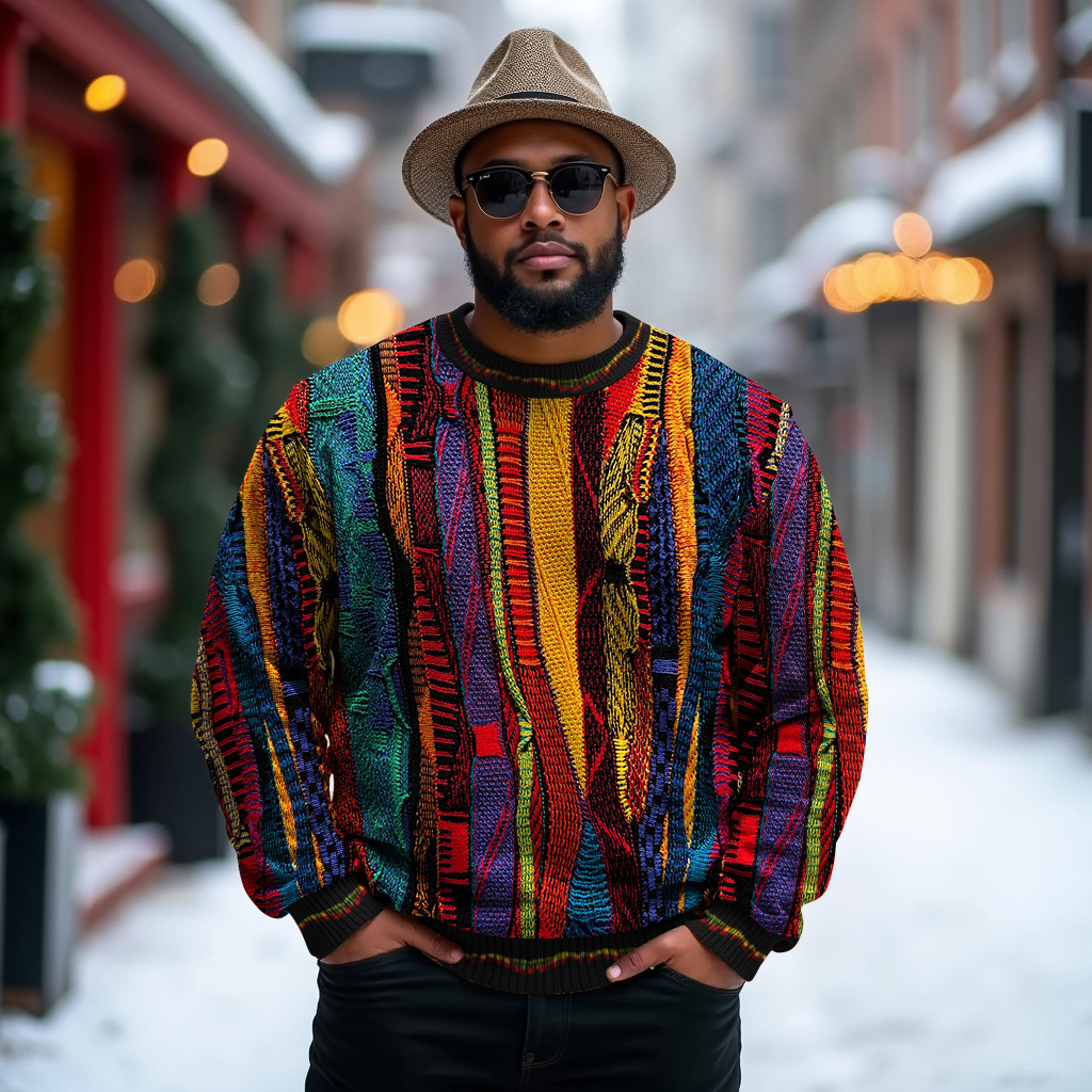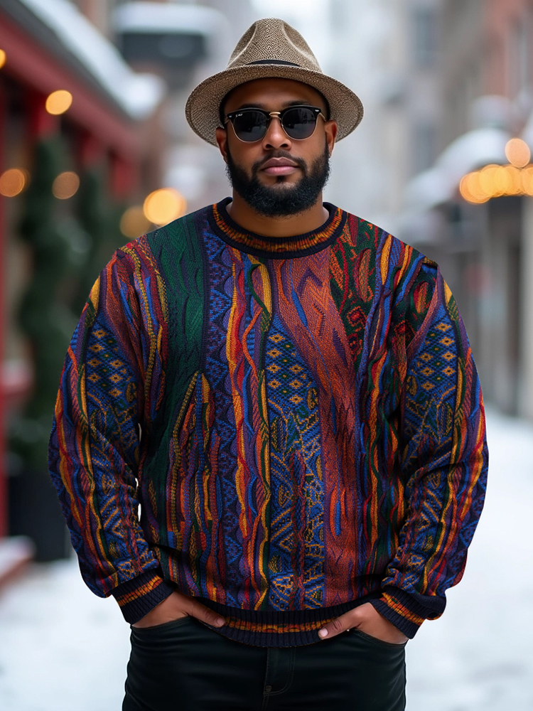 L-9XL Men's Plus Size Ethnic Graphics Knit Jacquard Christmas Gifts Sweater