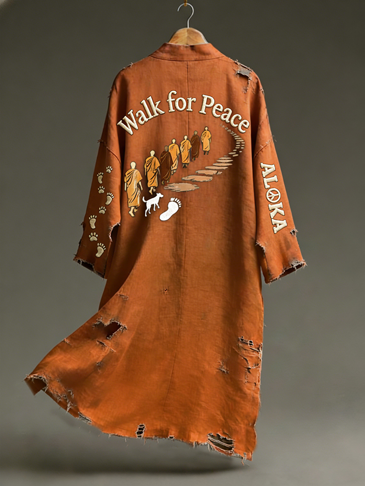 Pluslx Vintage Peace For Walk Art Print Linen Long Kimono