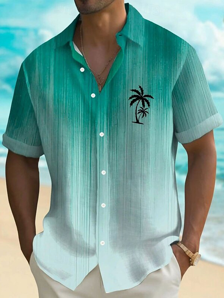 Pluslx Men's Coconut Tree Gradient Color Tropical Plants Summer Hawaiian Shirt