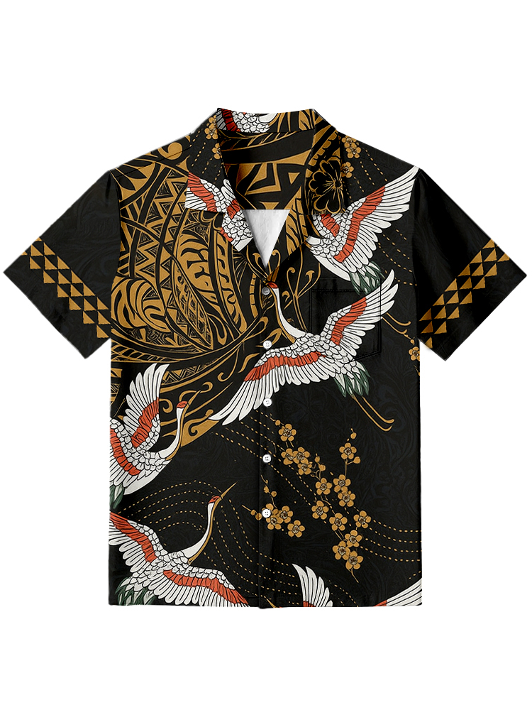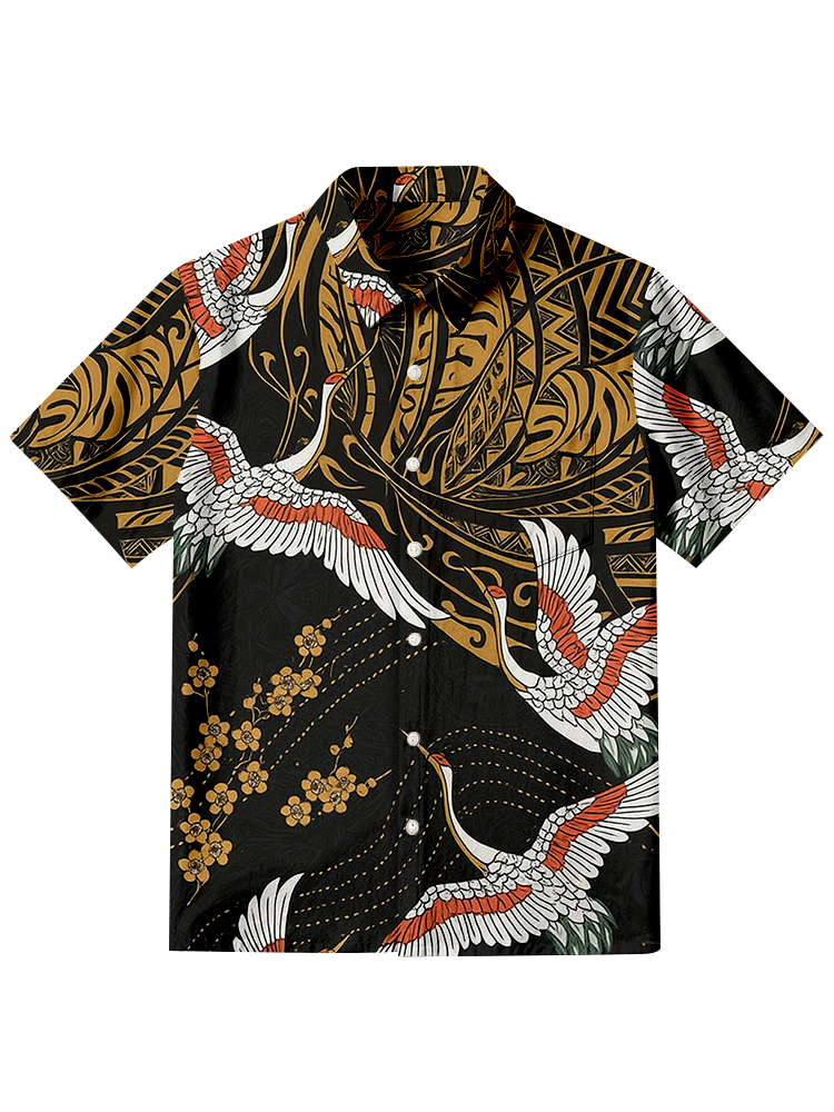 Pluslx Japanese Crane Flower Hawaiian Shirt