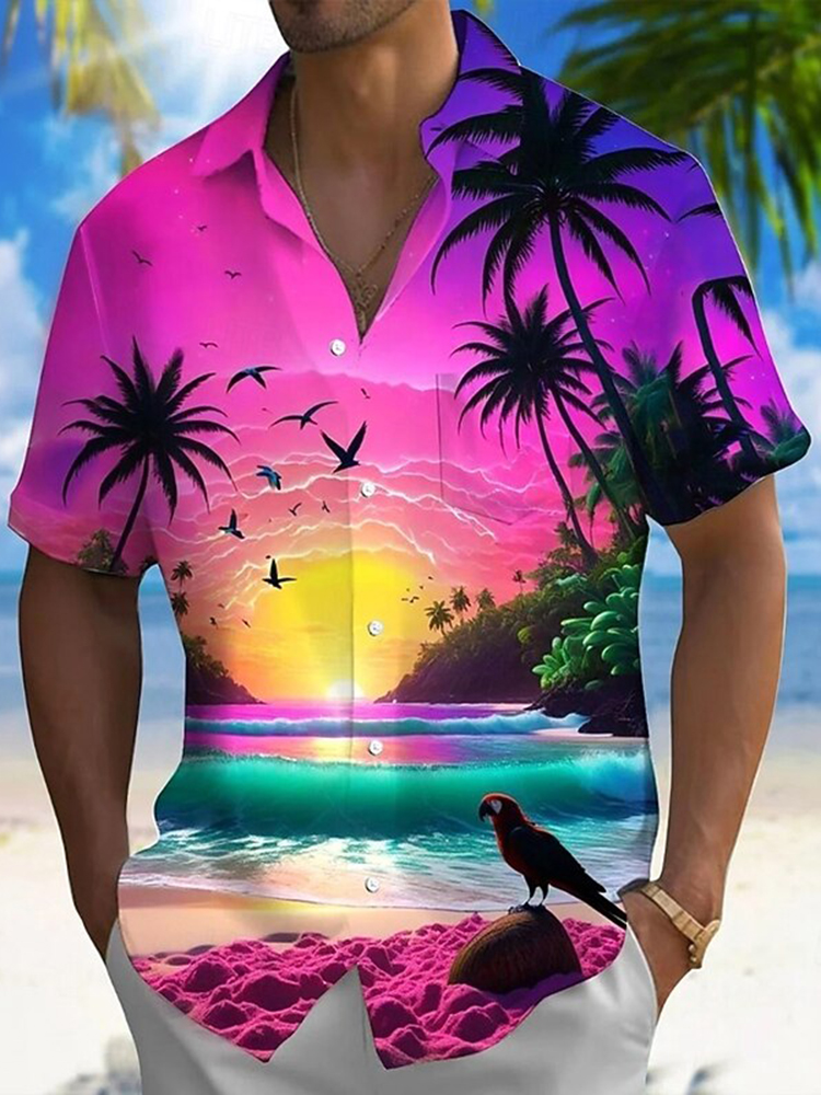 Pluslx Men's Coconut Tree Nature & Landscapes Tropical Plants Summer Hawaiian Shirt