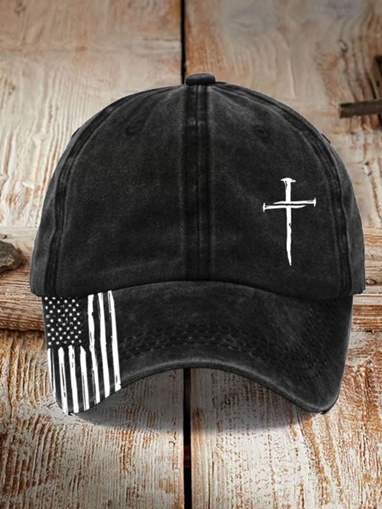 Pluslx Unisex Distressed Washed Retro American Flag Cross Print Hat