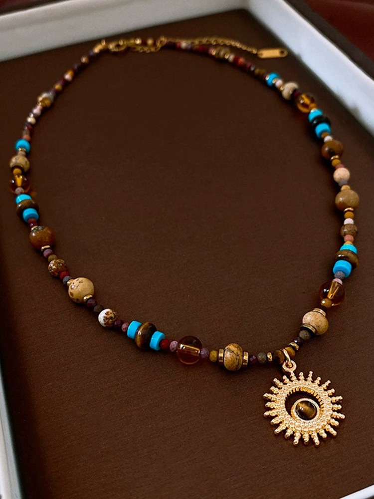 Pluslx African Tribal Sun Graphics Ethnic Beads Necklace