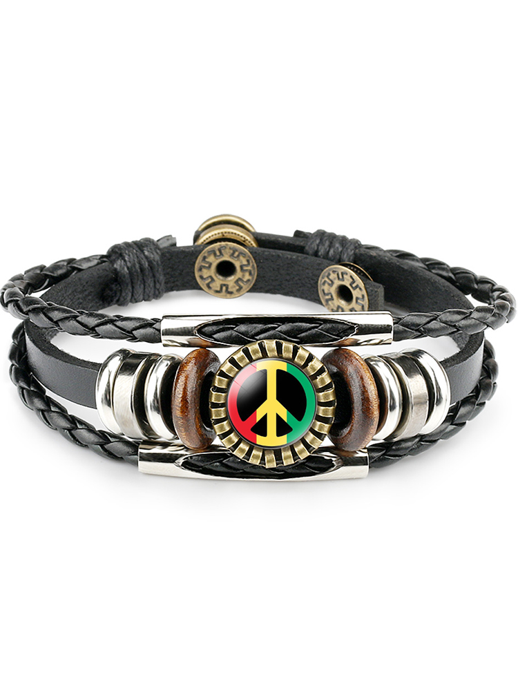 L-9XL Men's Rasta Peace Sign Woven Leather Bracelet