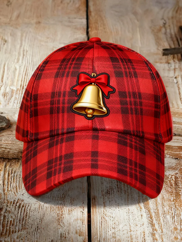 Pluslx Unisex Christmas Red Plaid Bell Print Hat