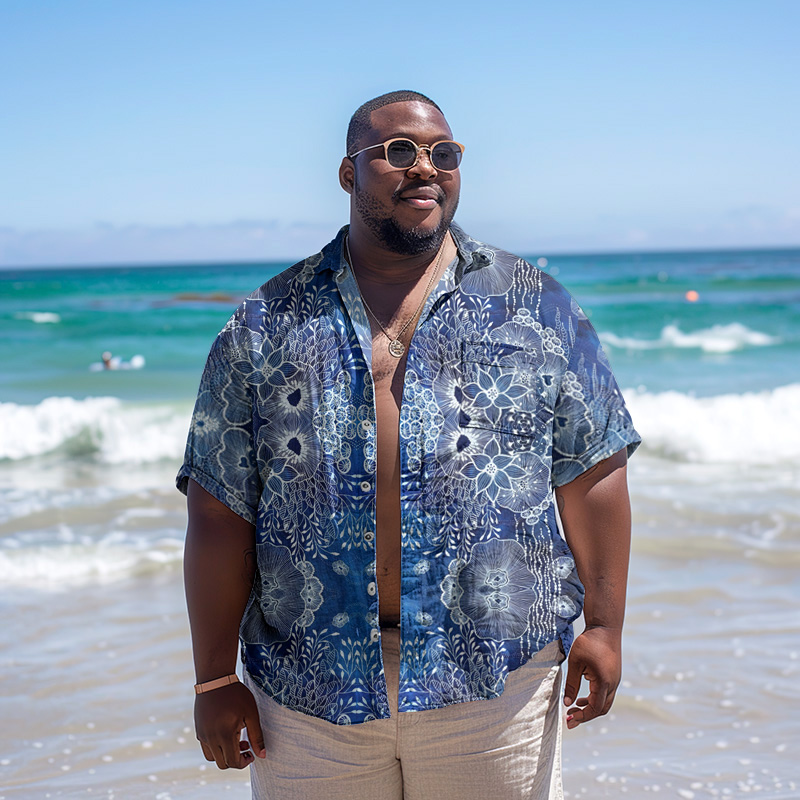 L-9XL Men's Plus Size Botanical Graphics Art Printed Mixed Linen Shirt