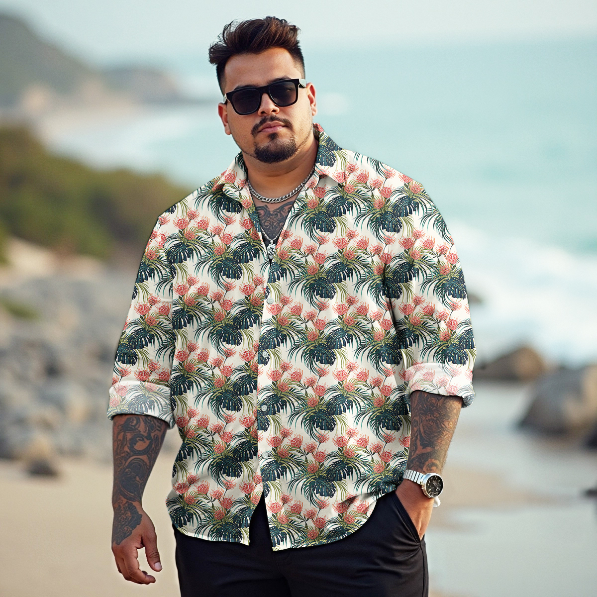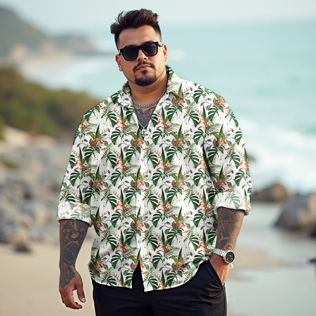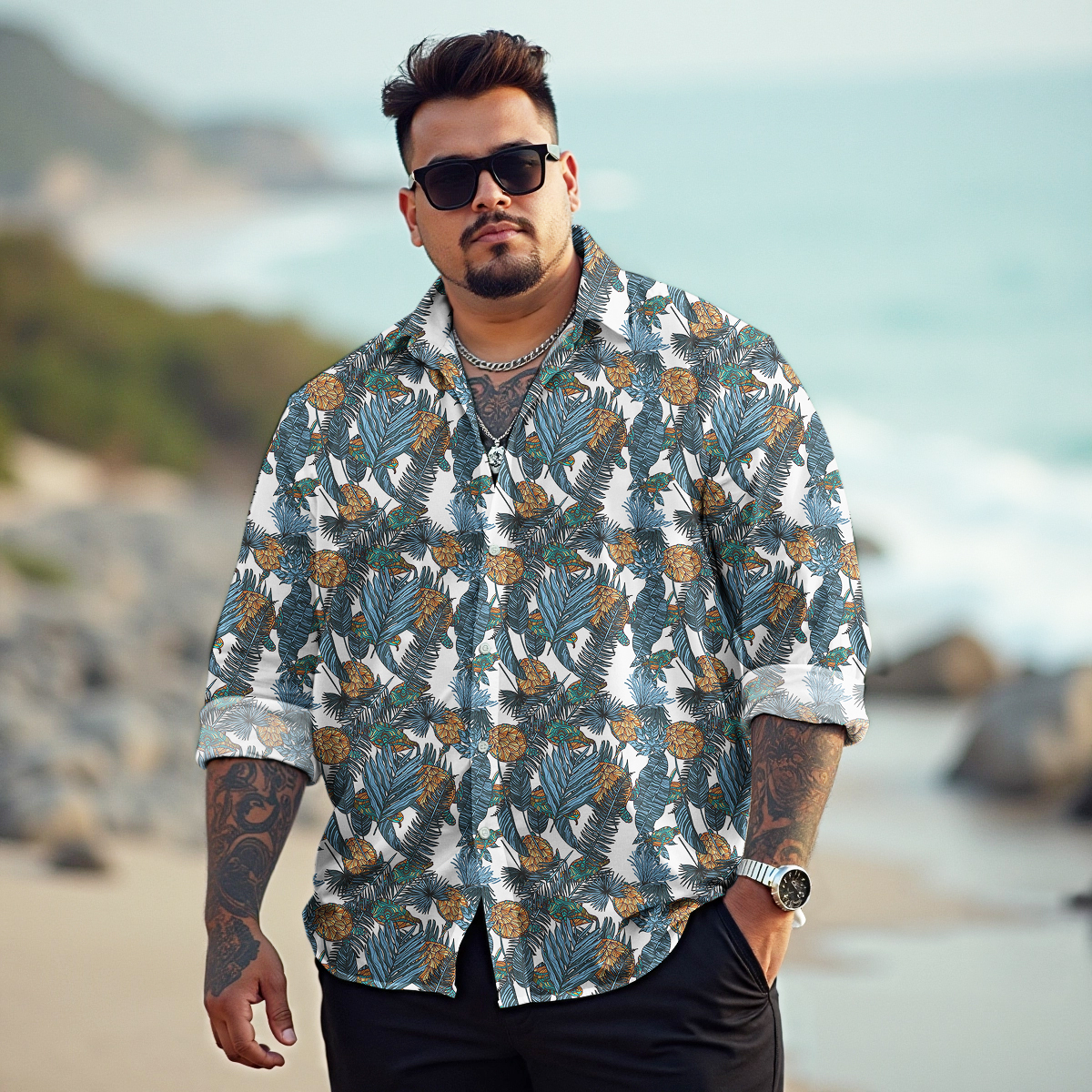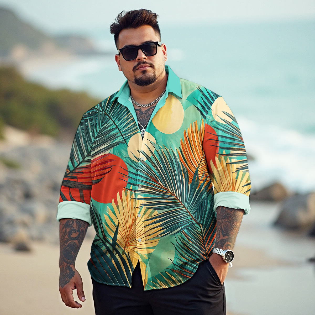L-9XL Men'S Plus Size Casual Palm Leaf Graphic Holiday Long Sleeve Shirt
