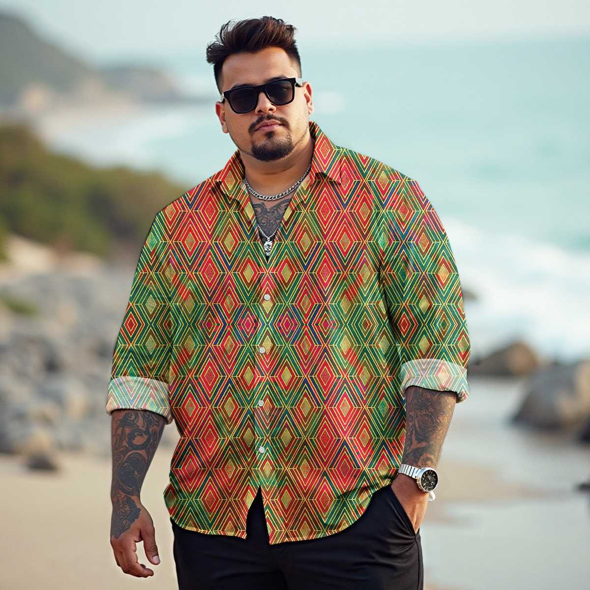 L-9XL Men'S Plus Size Casual Contrasting Geometry Graphic Holiday Long Sleeve Shirt