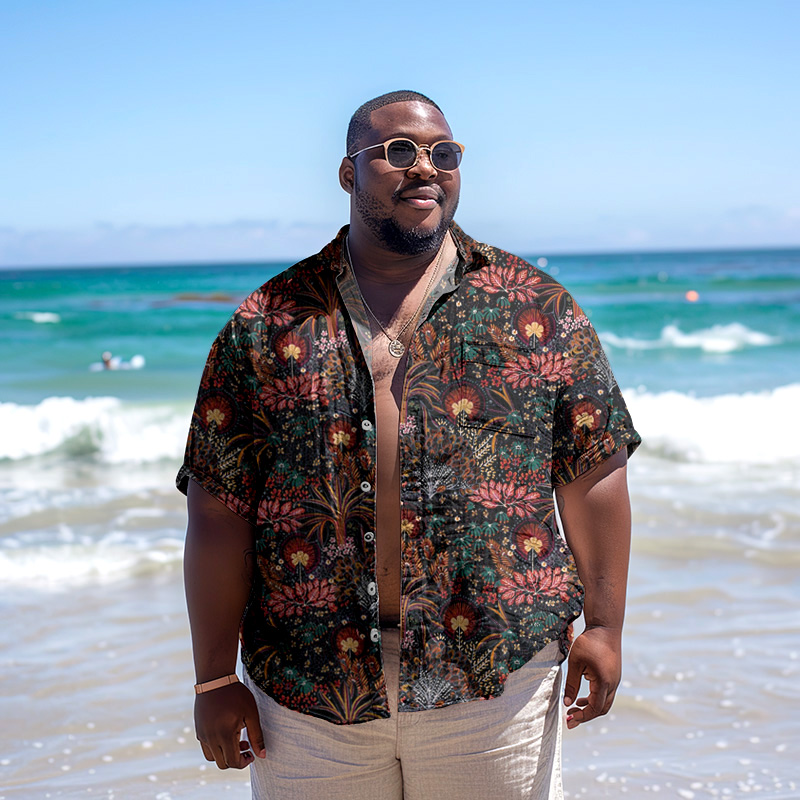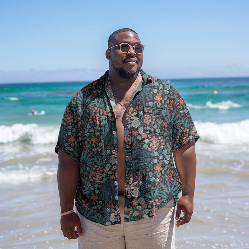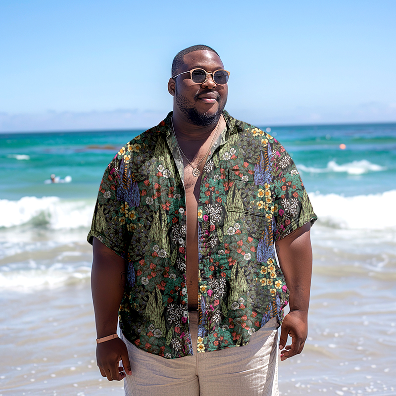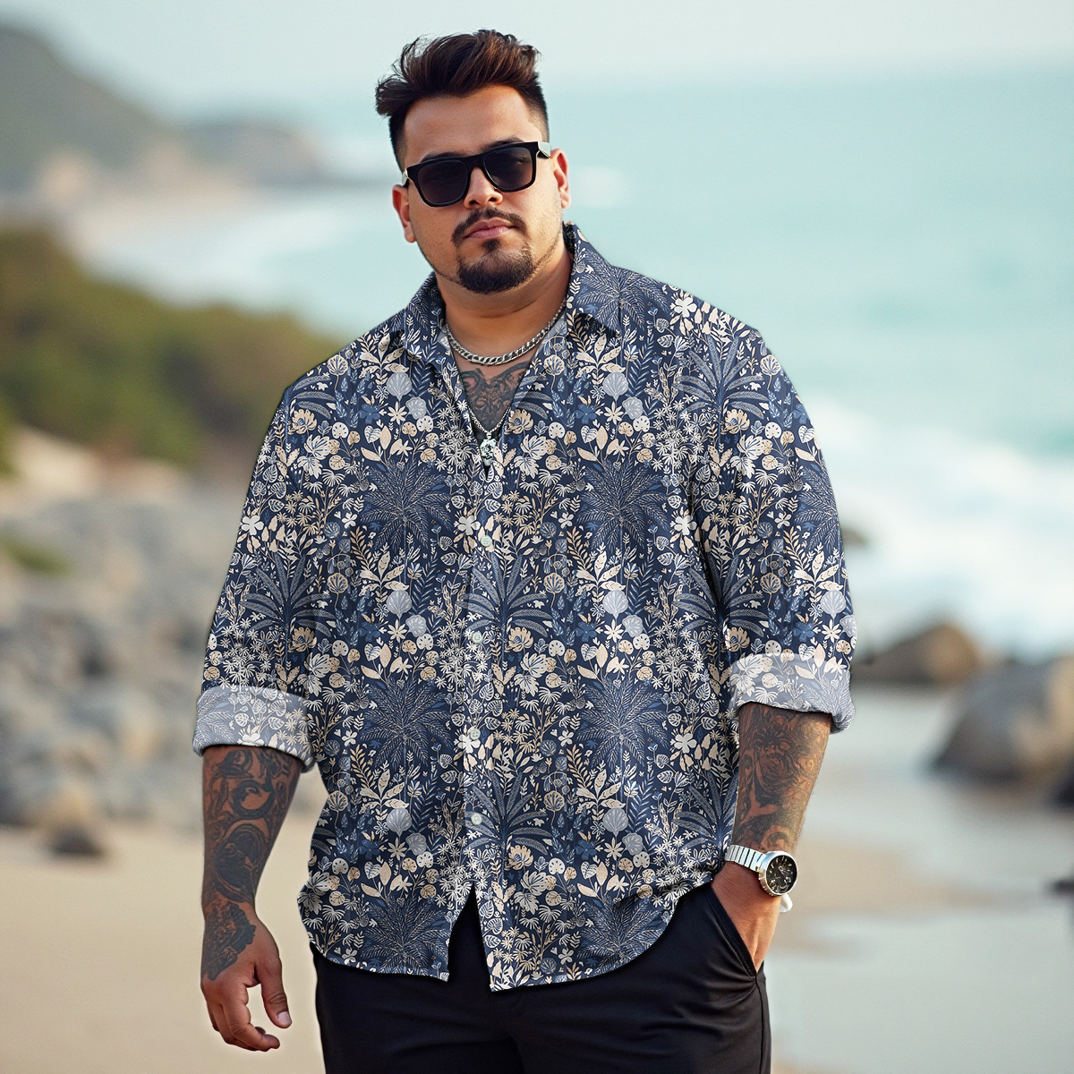L-9XL Men'S Plus Size Casual Botanical Graphic Holiday Long Sleeve Shirt