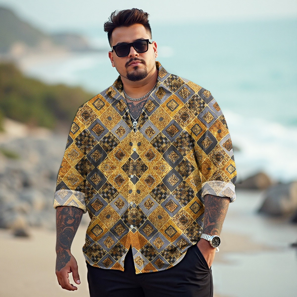 L-9XL Men'S Plus Size Casual Golden Geometry Graphic Holiday Long Sleeve Shirt