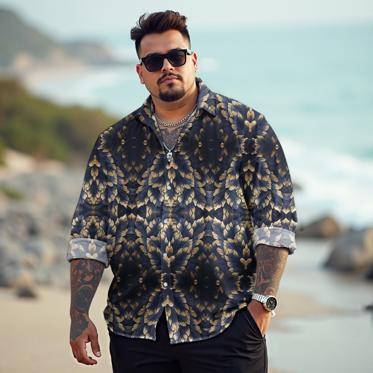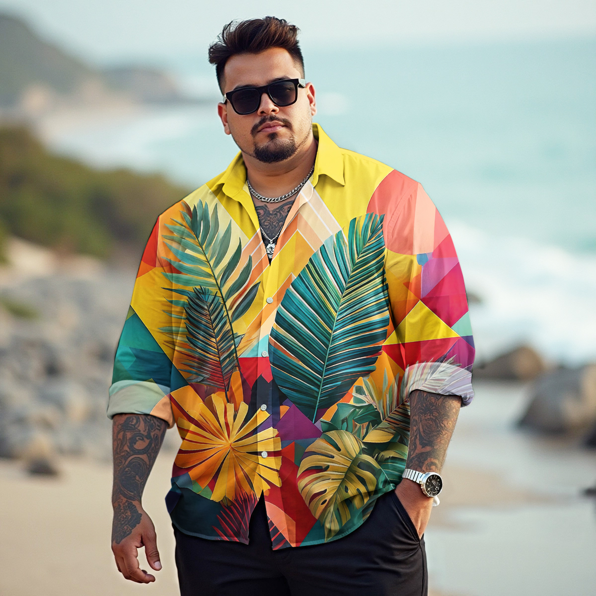 L-9XL Men'S Plus Size Casual Abstract Geometric Palm Leaves Art Graphic Holiday Long Sleeve Shirt