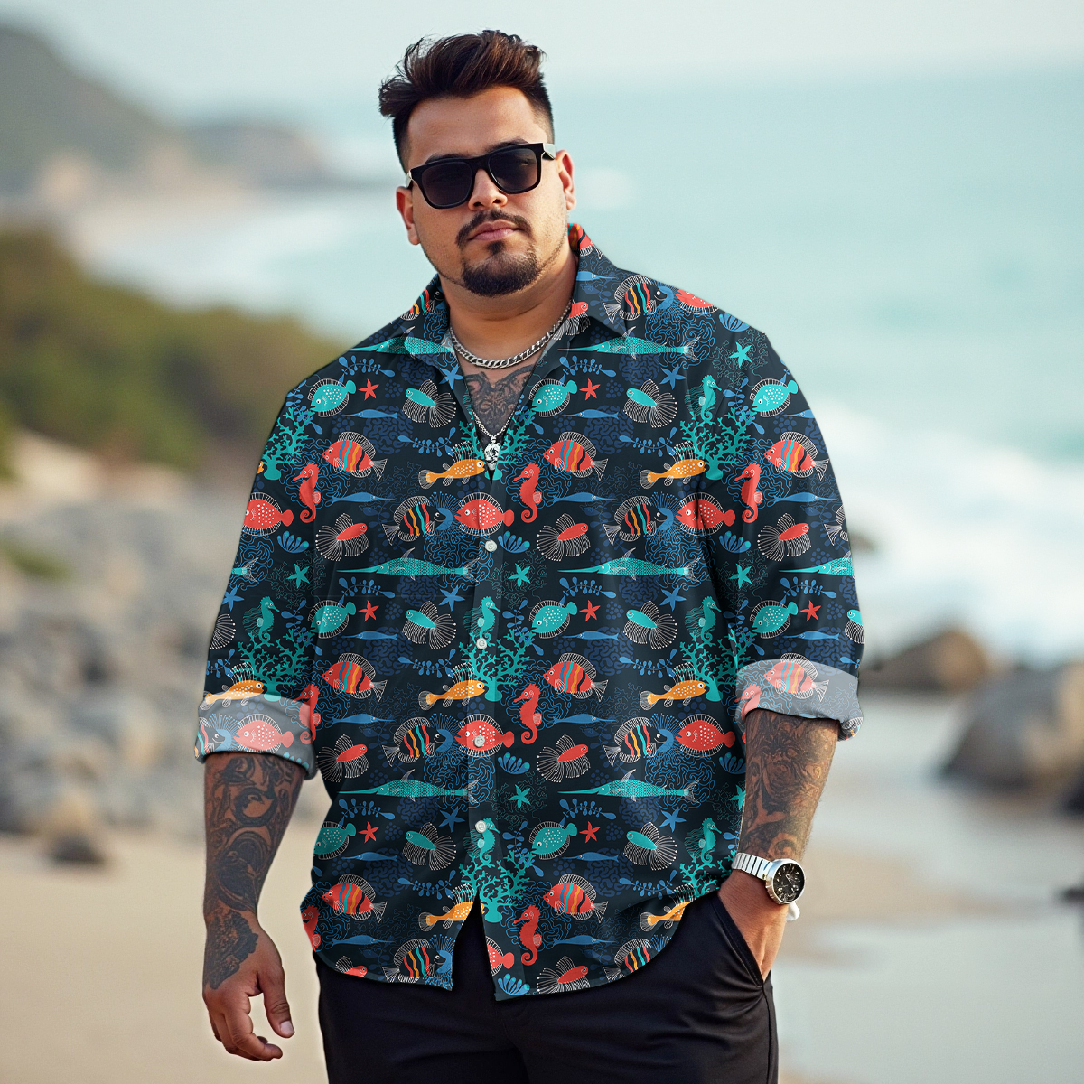 L-9XL Men'S Plus Size Casual Interesting Fish Graphic Holiday Long Sleeve Shirt
