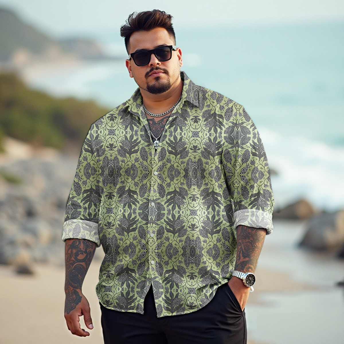 L-9XL Men'S Plus Size Casual Geometric Plant Abstract Art Graphic Holiday Long Sleeve Shirt