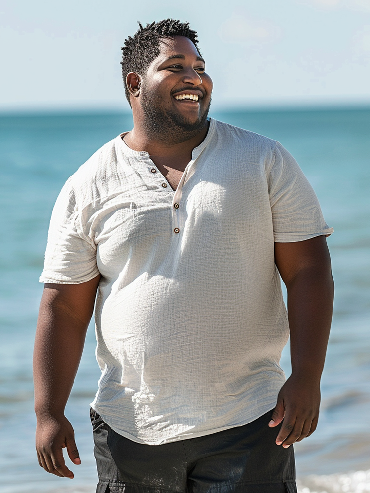 L-9XL Men's Casual Plus Size Cotton And Linen Henry Collar Shirt