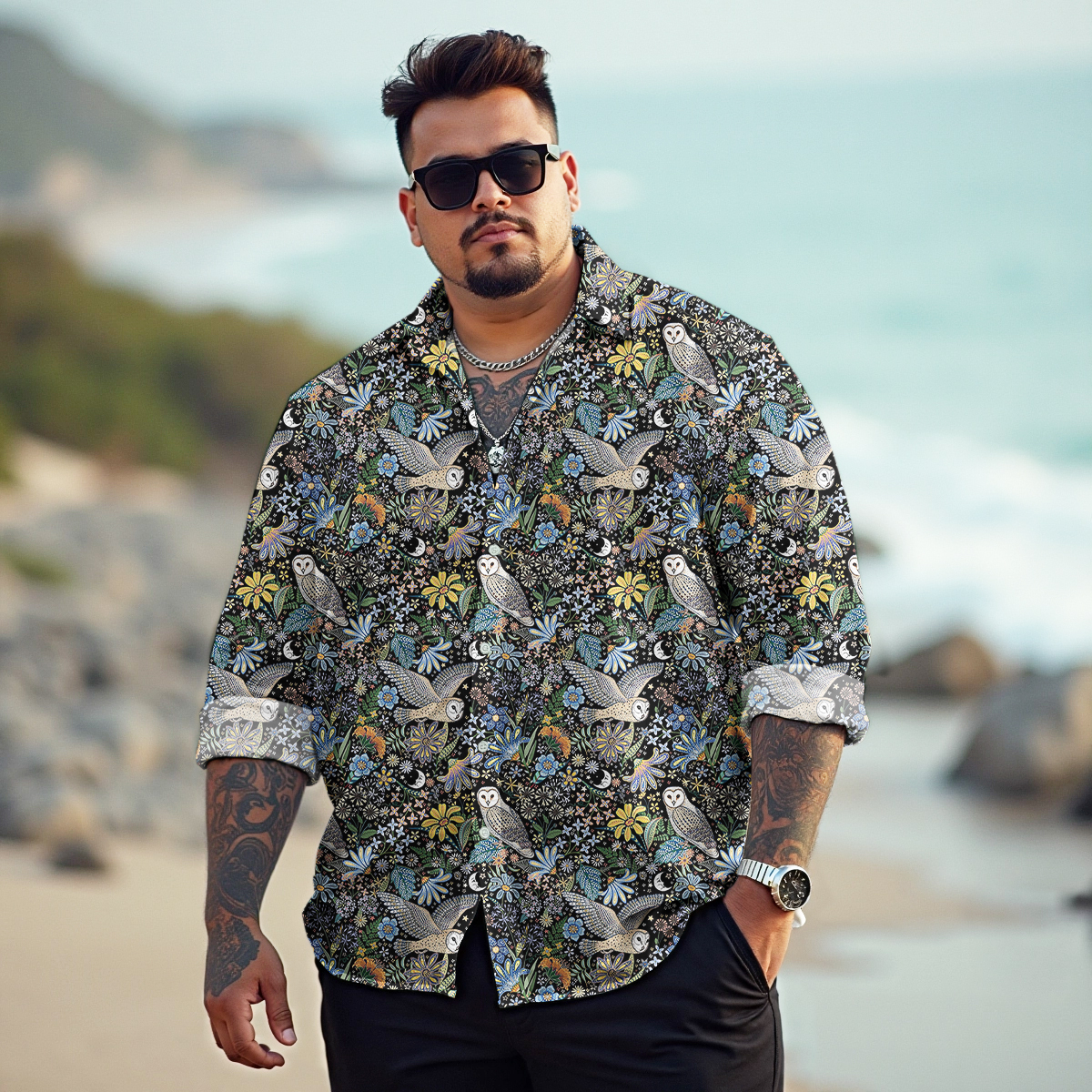L-9XL Men'S Plus Size Casual Floral And Owl Graphic Holiday Long Sleeve Shirt