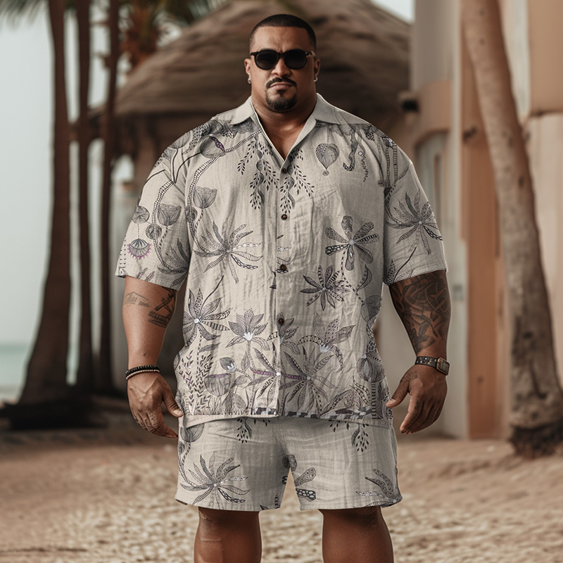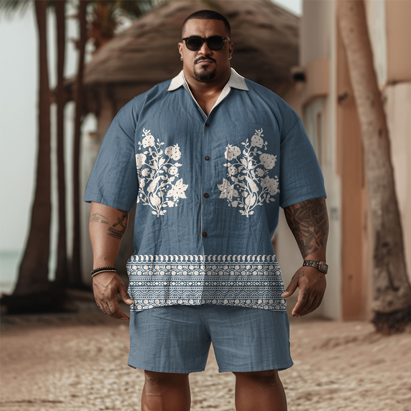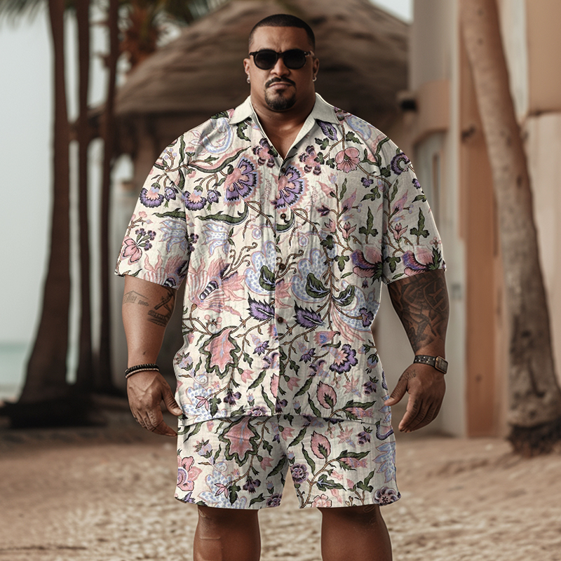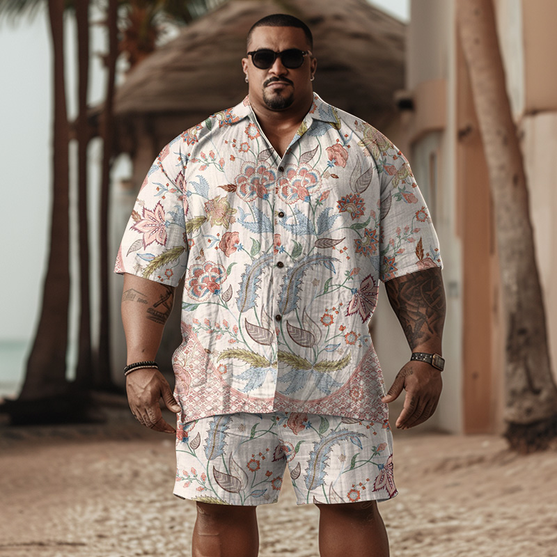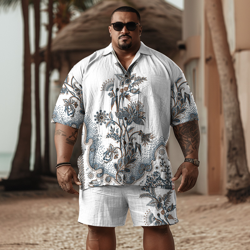 L-9XL Flower Antique Vacation Style Short Sleeved Shorts Two-piece Set