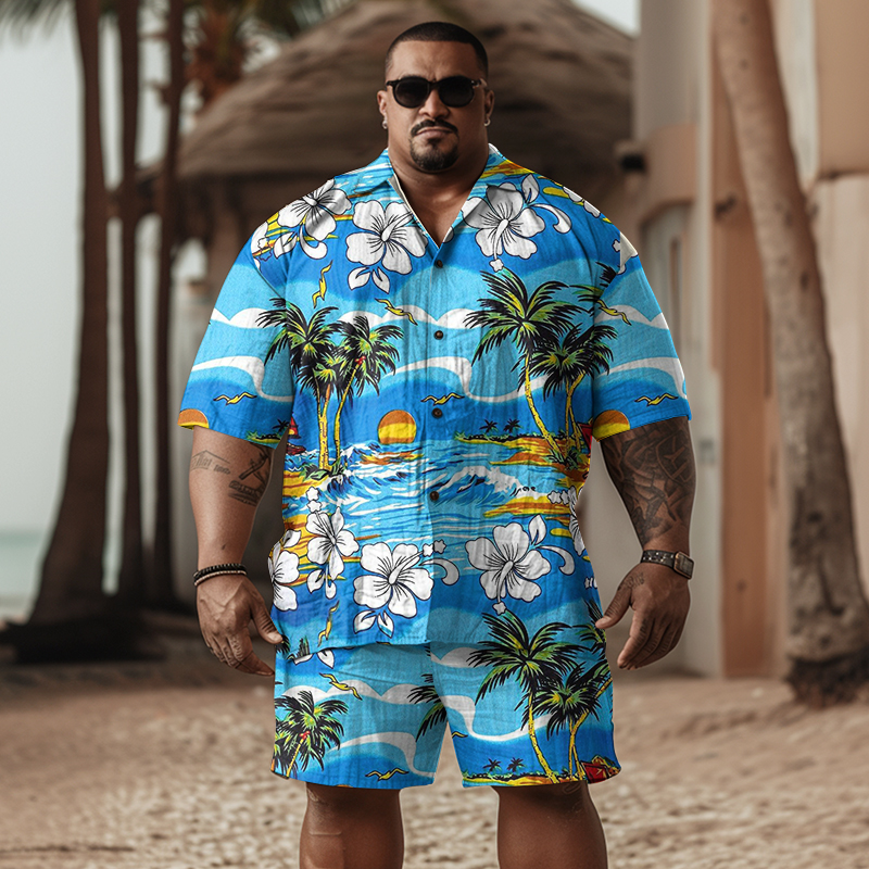 L-9XL Holiday Coconut Grove Plus Size Shirt Short Sleeves Shorts Two-piece Set
