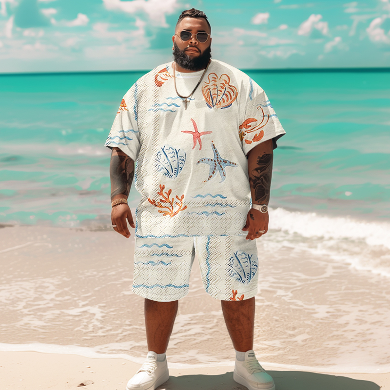 L-9XL Sun God Vacation Style Plus Size Short Sleeved Shorts Two-piece Set