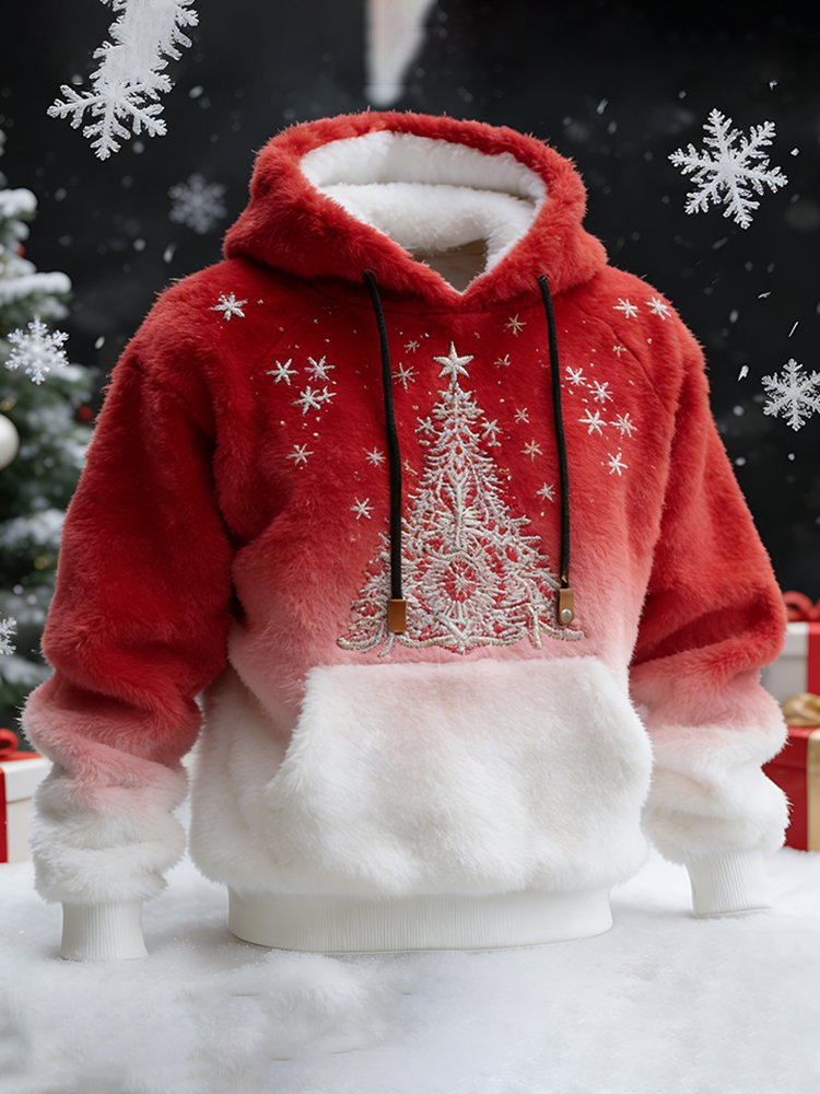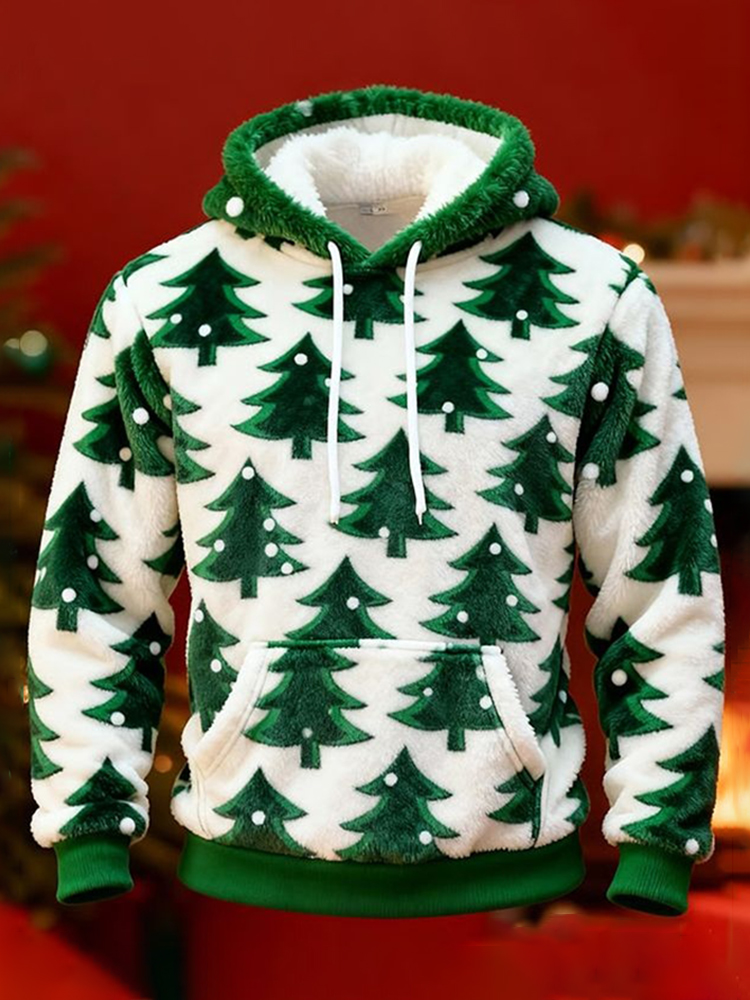Pluslx Men's Christmas Tree Christmas Plush Hoodie
