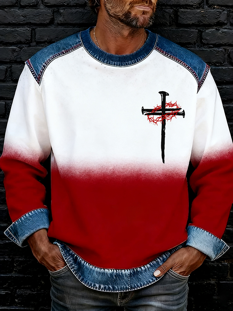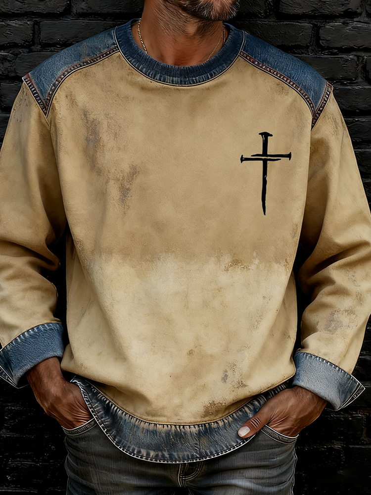 Pluslx Men's Retro Faith Art Crew Neck Casual Sweatshirt