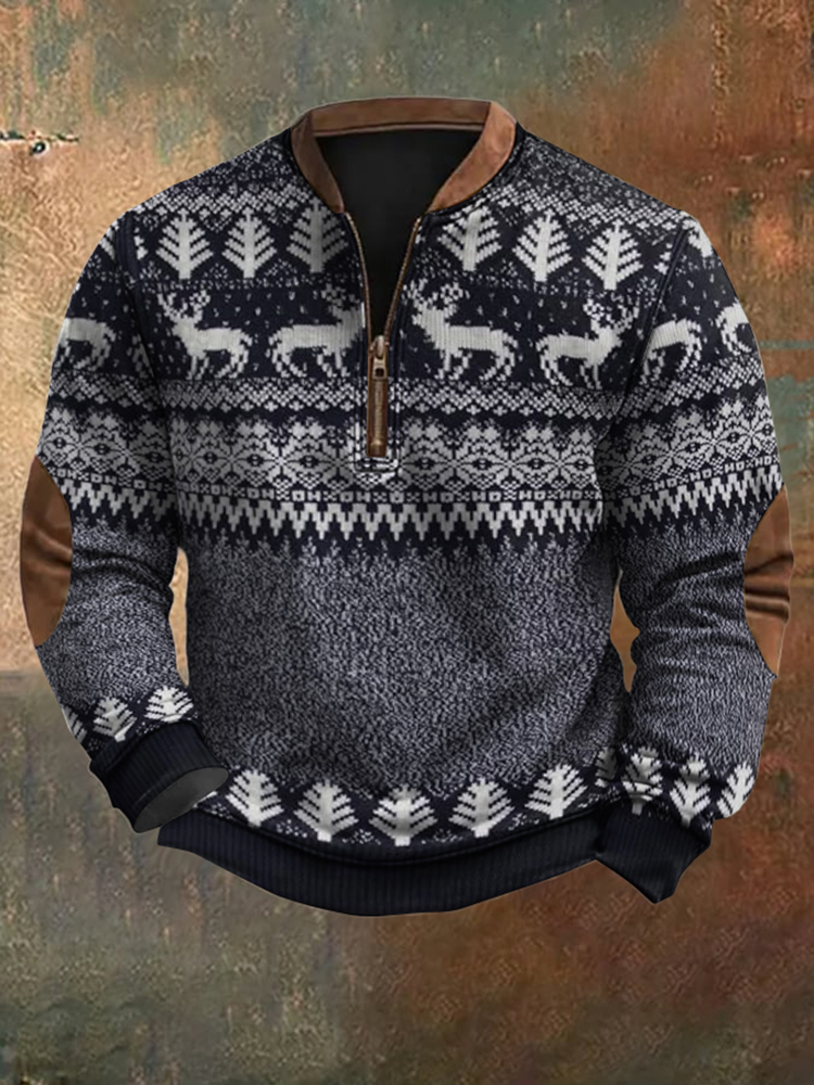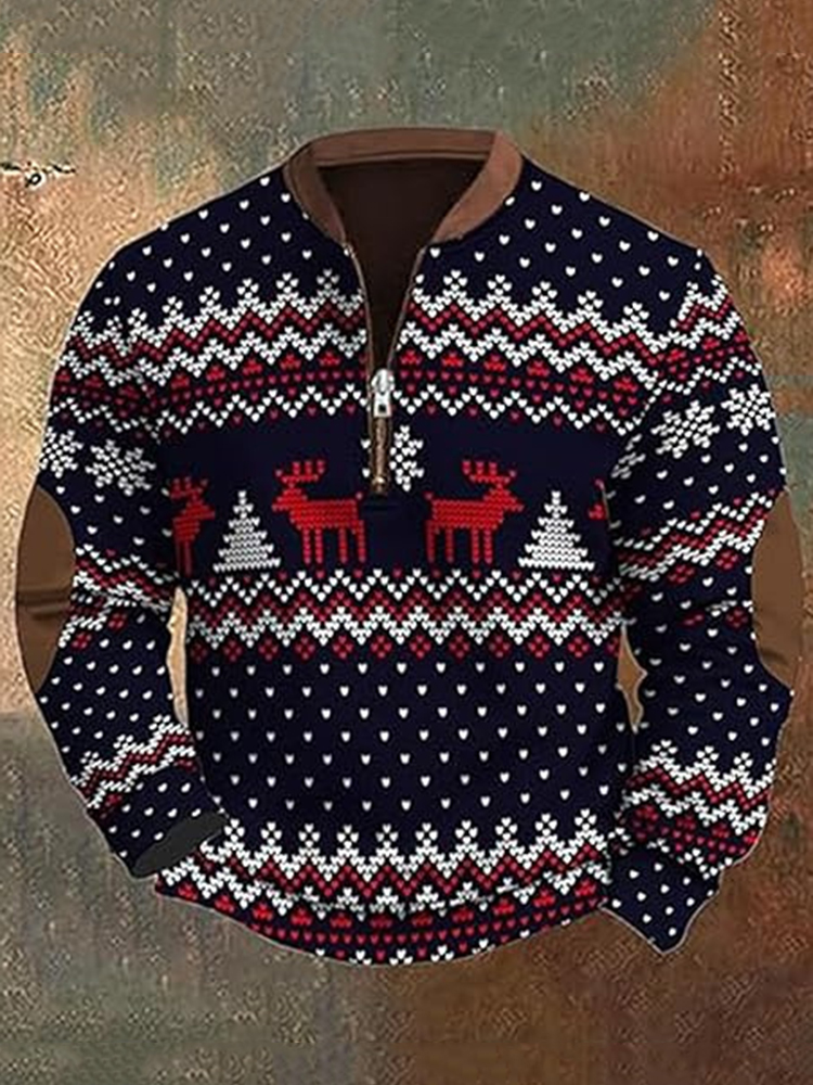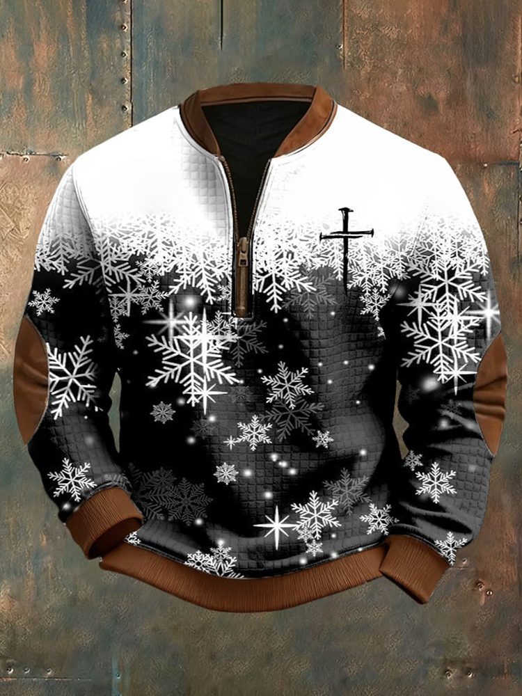 Pluslx Men's Christmas Cross Pattern Casual Zip-up Sweatshirt