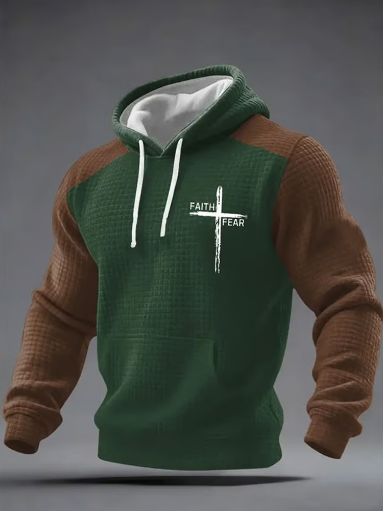 Pluslx Men's Faith Print Checkered Fabric Hooded Sweatshirt