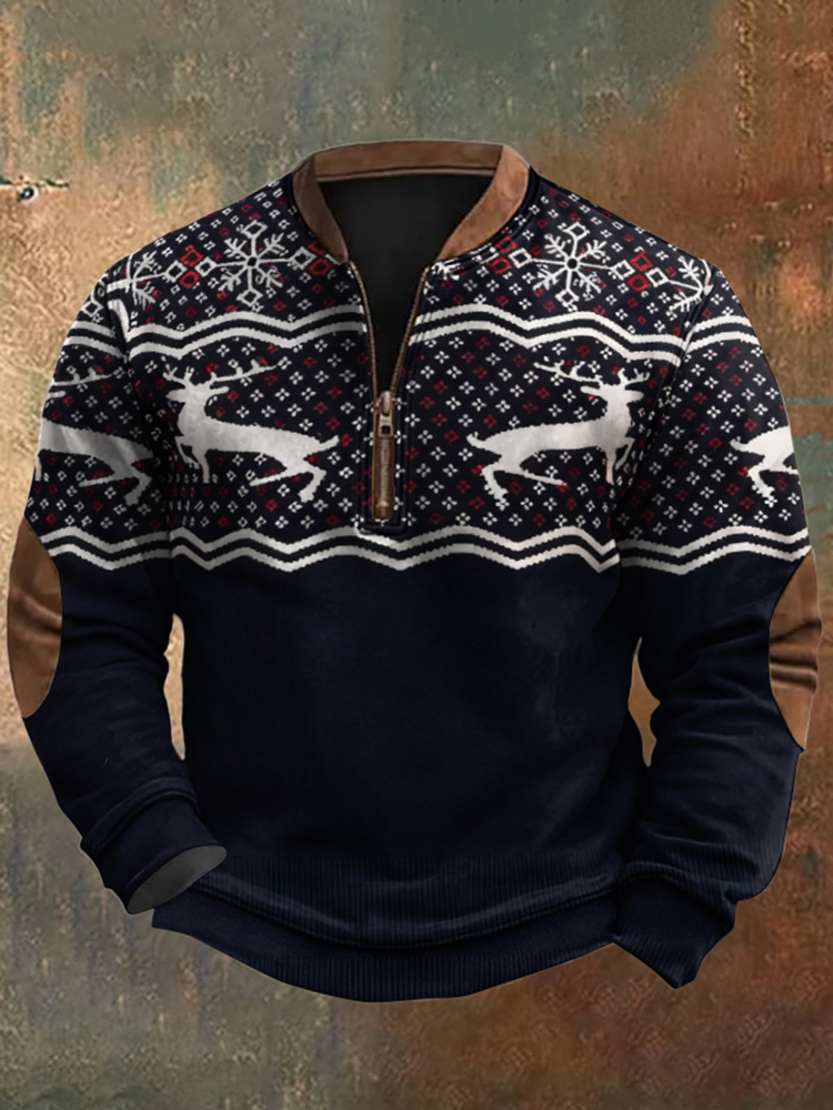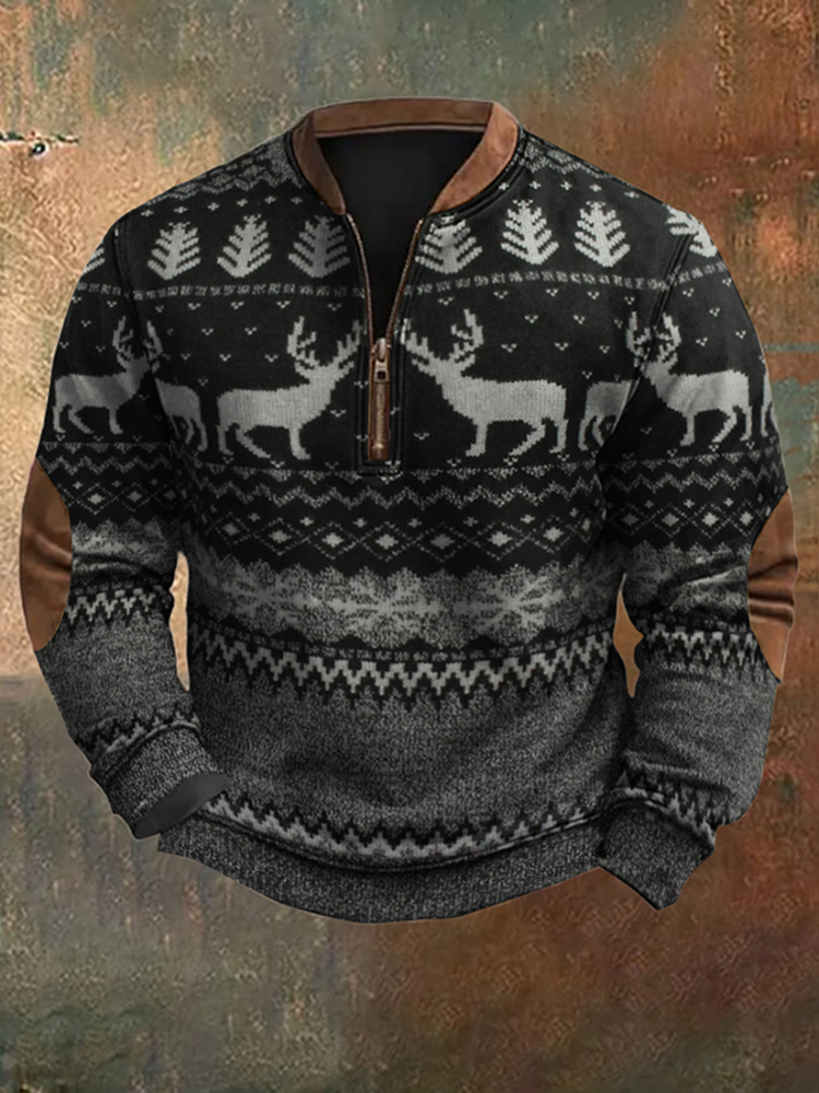 Pluslx Men's Vintage Christmas Reindeer Print Sweatshirt