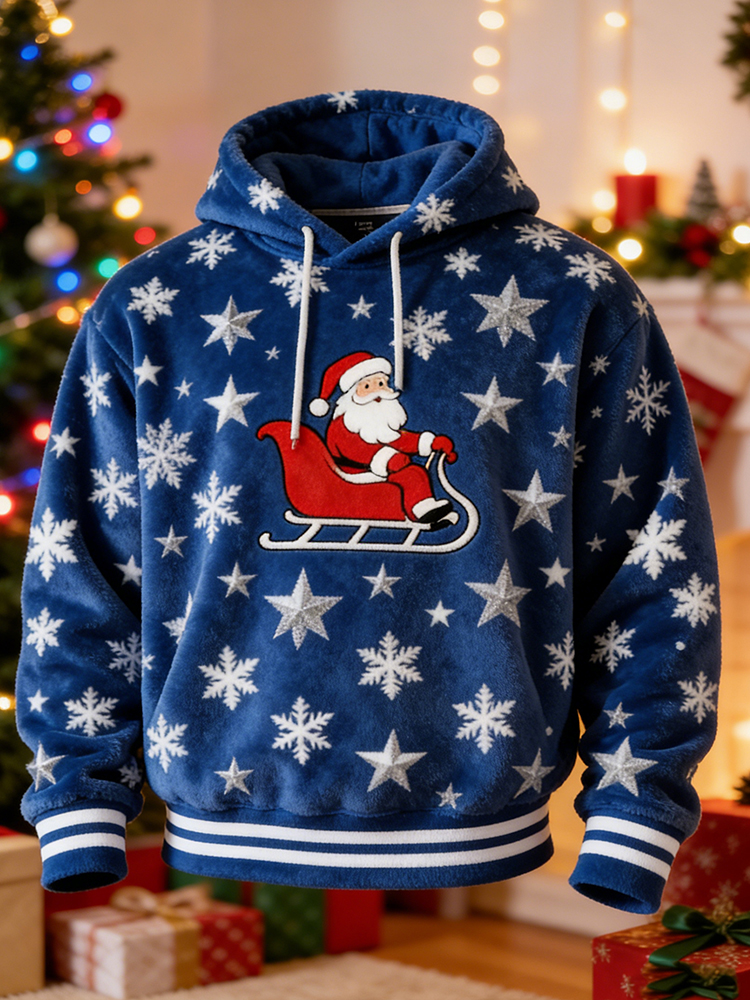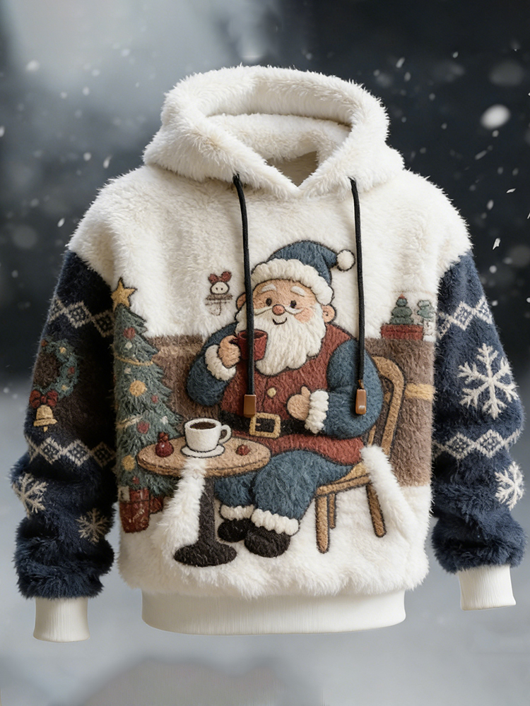Pluslx Men's Santa Claus Pattern Plush Hoodie
