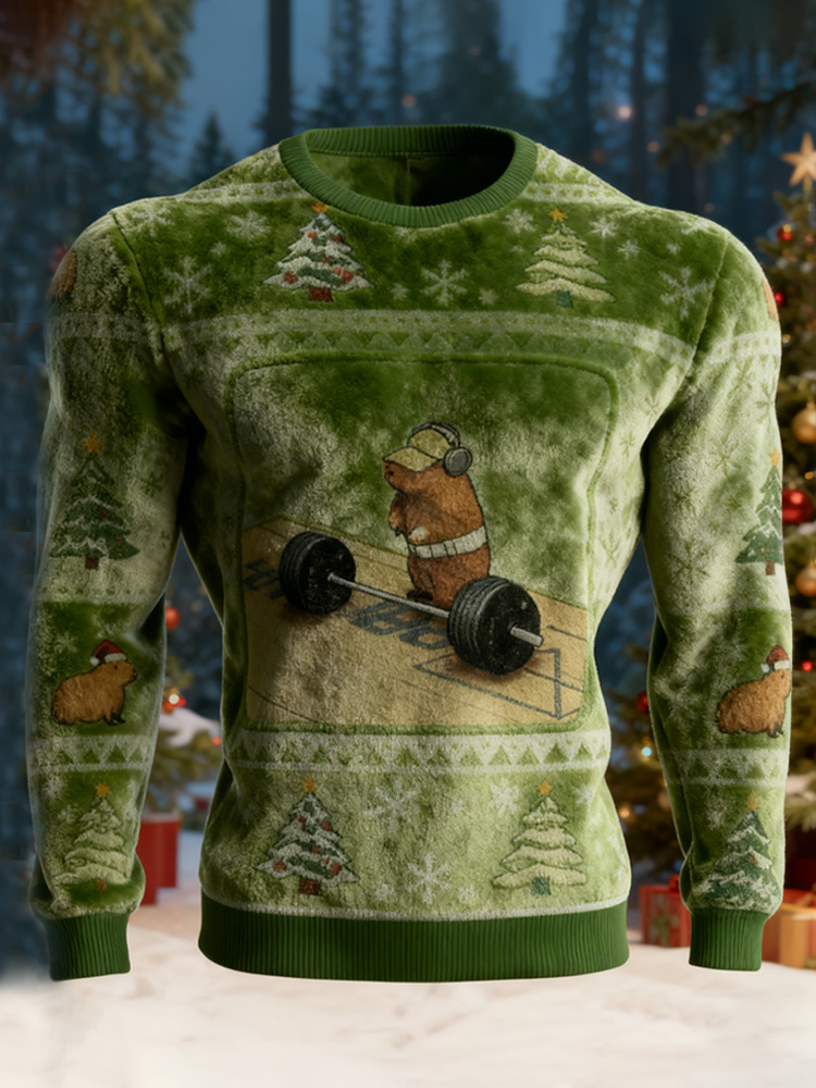 Pluslx Funny Cute Rat Weightlifting Meme Christmas Ugly Flannel Sweatshirt