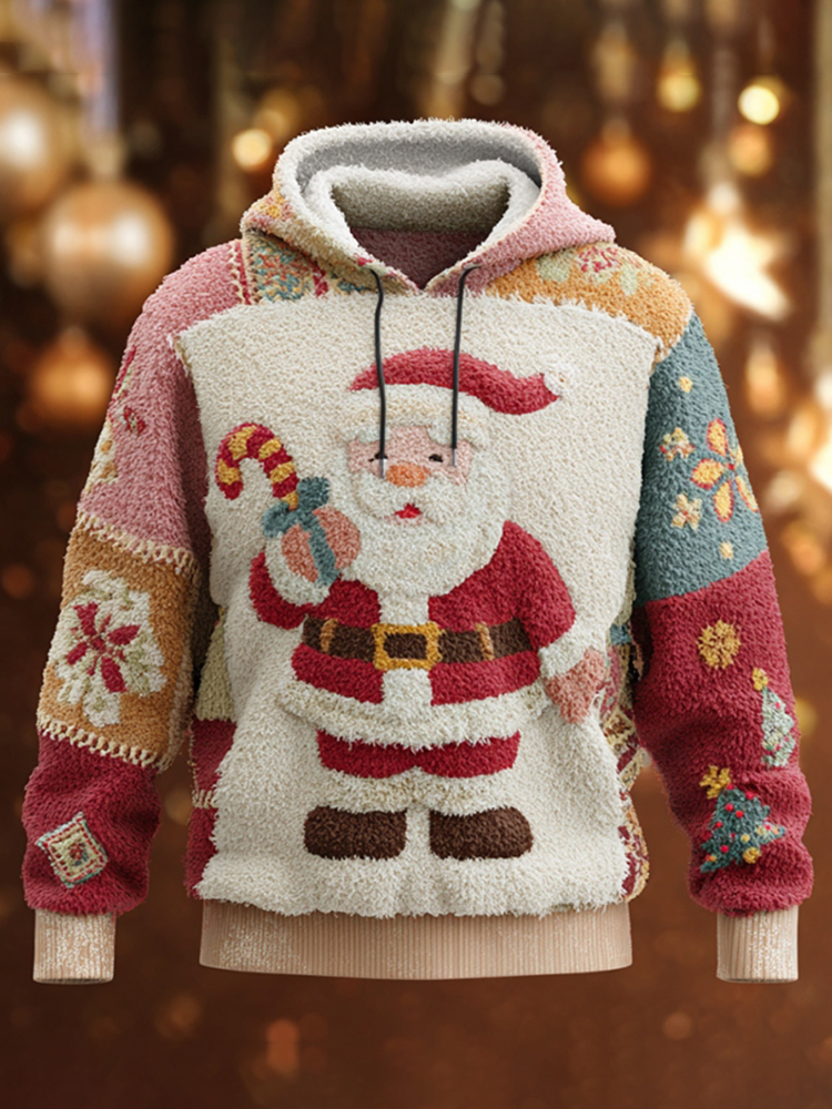 Pluslx Men's Casual Santa Claus Pattern Plush Hoodie