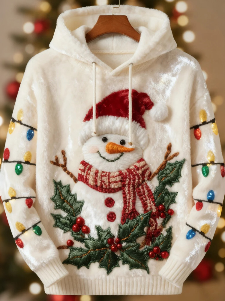Pluslx Christmas Snowman And Colorful Lights Art Print Casual Flannel Hoodie