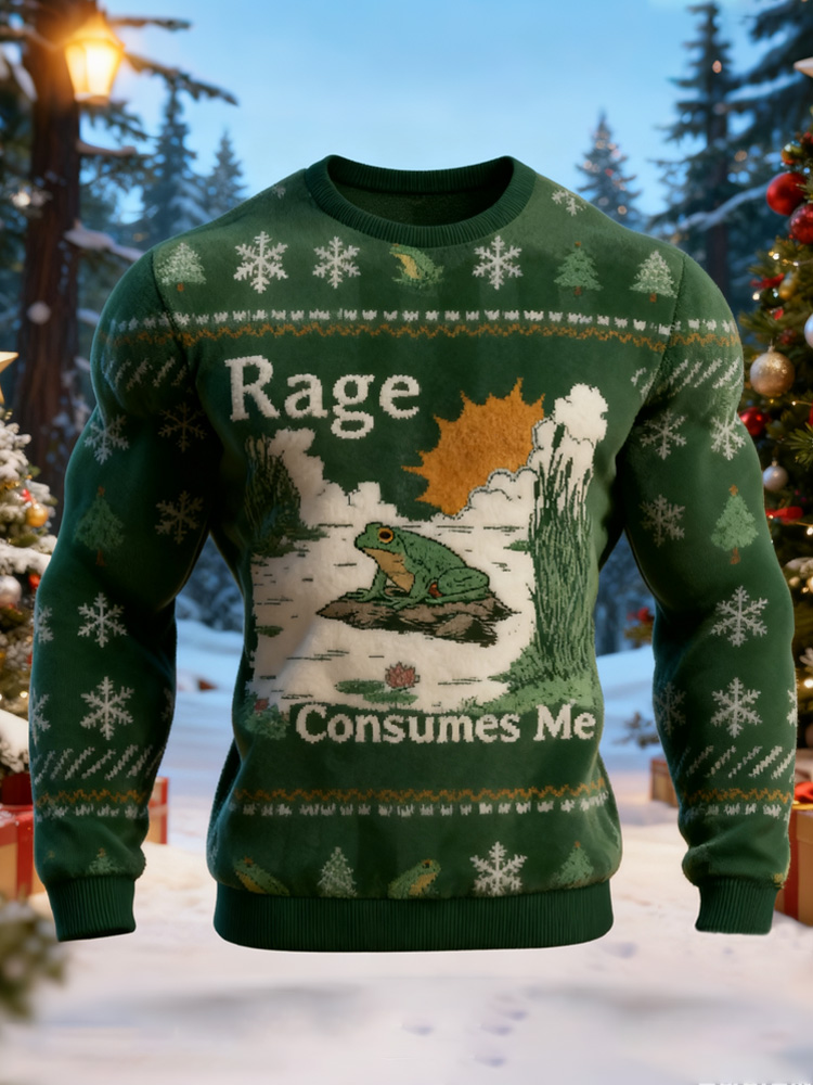 Pluslx Rage Consumes Me Frog Pond Christmas Ugly Flannel Sweatshirt