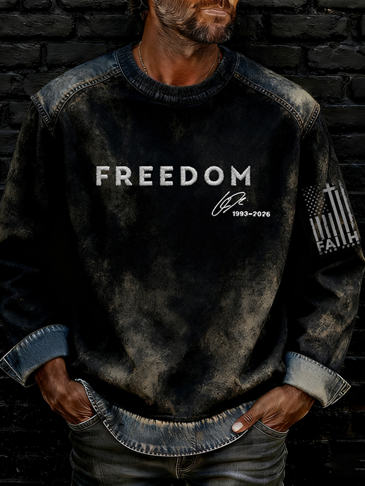 Pluslx Men's Retro Freedom And Faith Over Fear Art Crew Neck Casual Sweatshirt