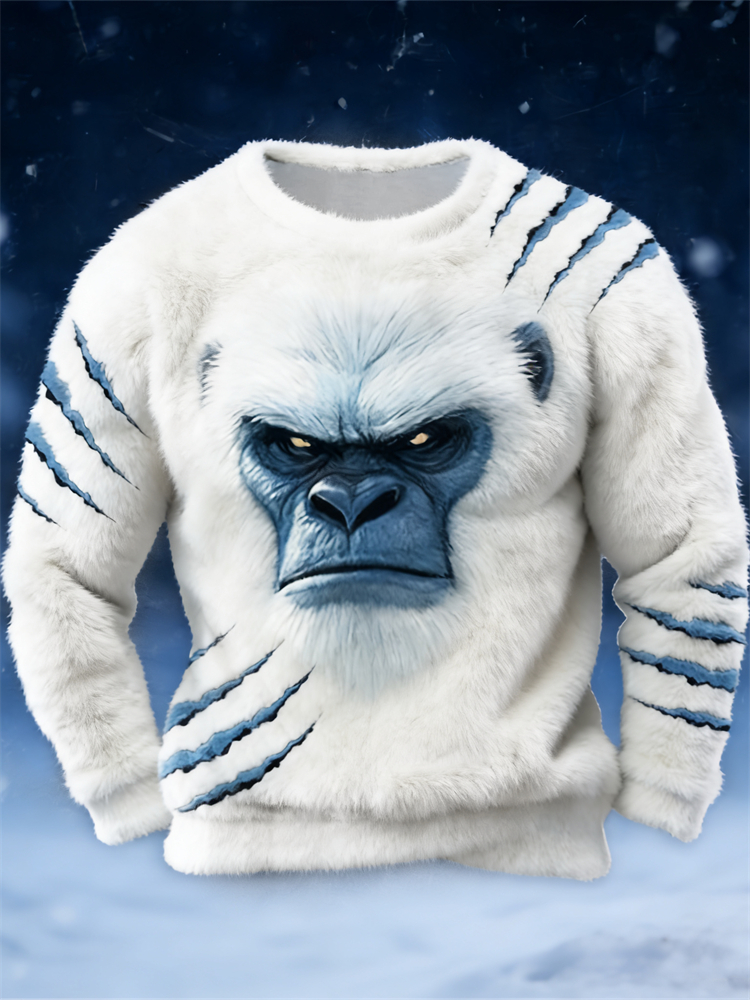 Pluslx Men's Ice Monster Scratch Cozy Fuzzy Plush Sweatshirt
