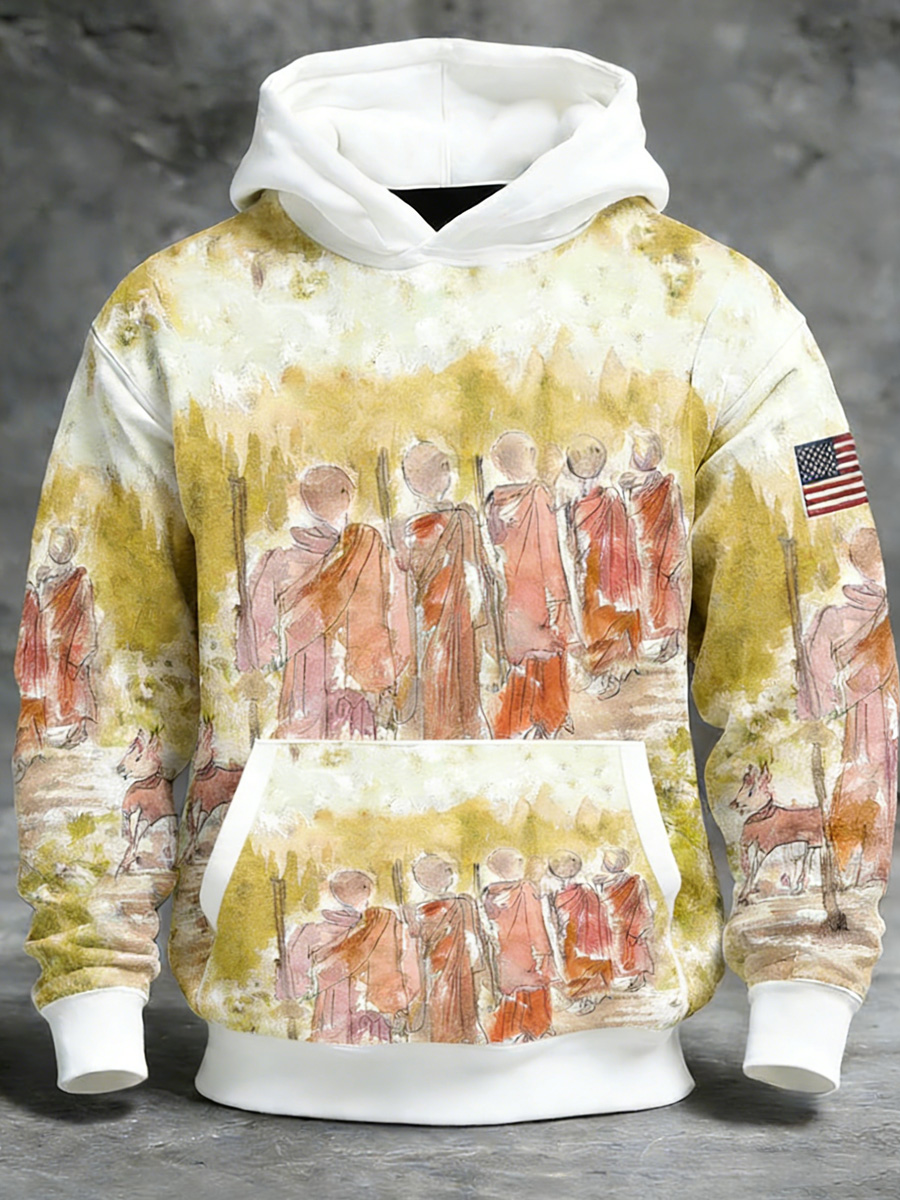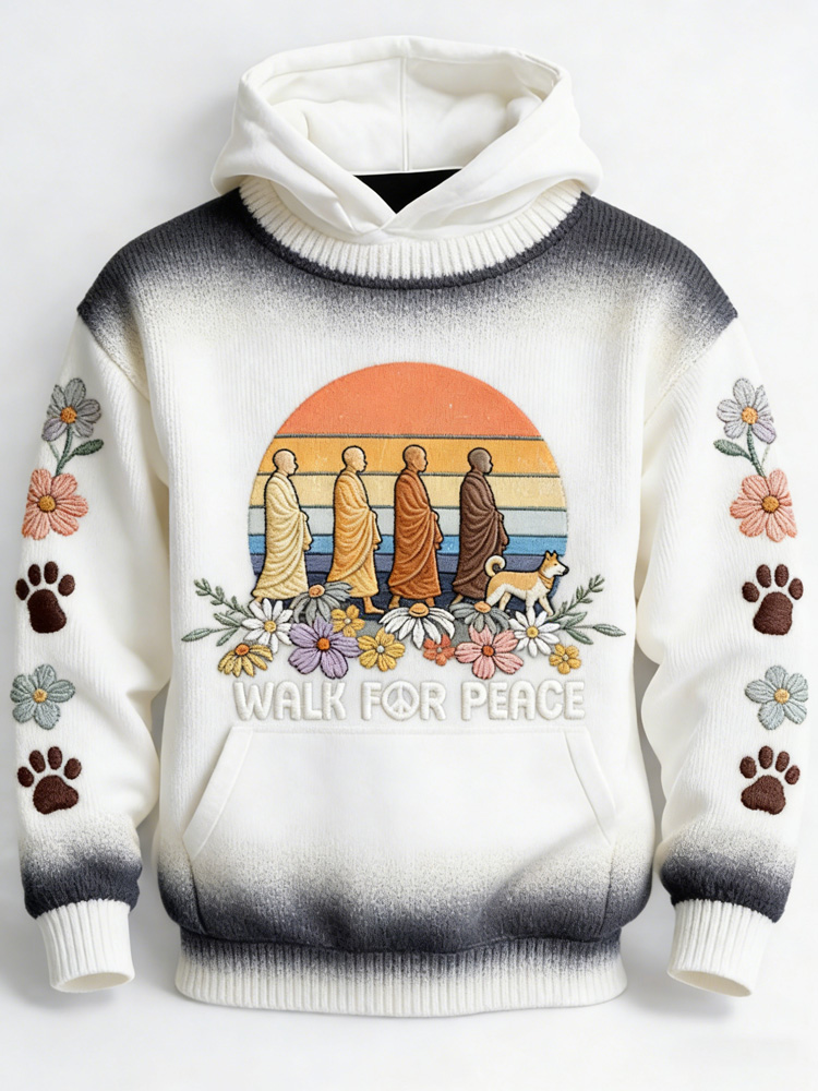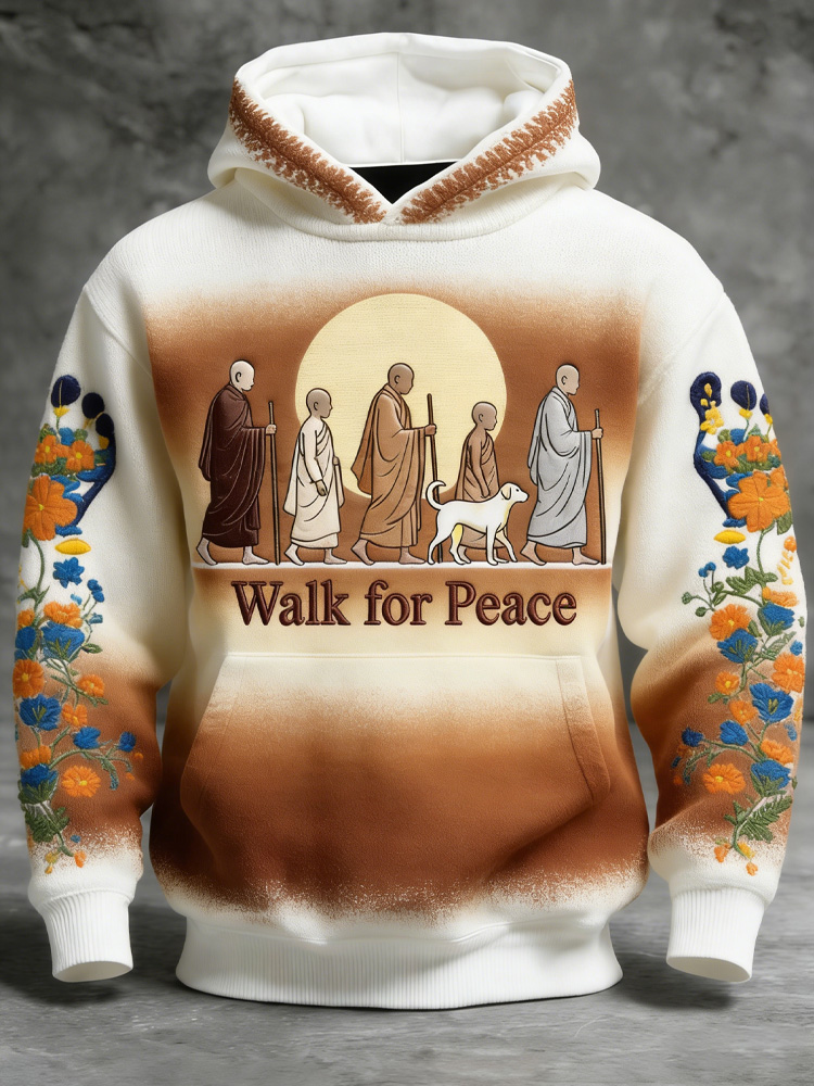 Pluslx Men's Retro Walk For Peace Monks With Aloka Dog Print Hoodie