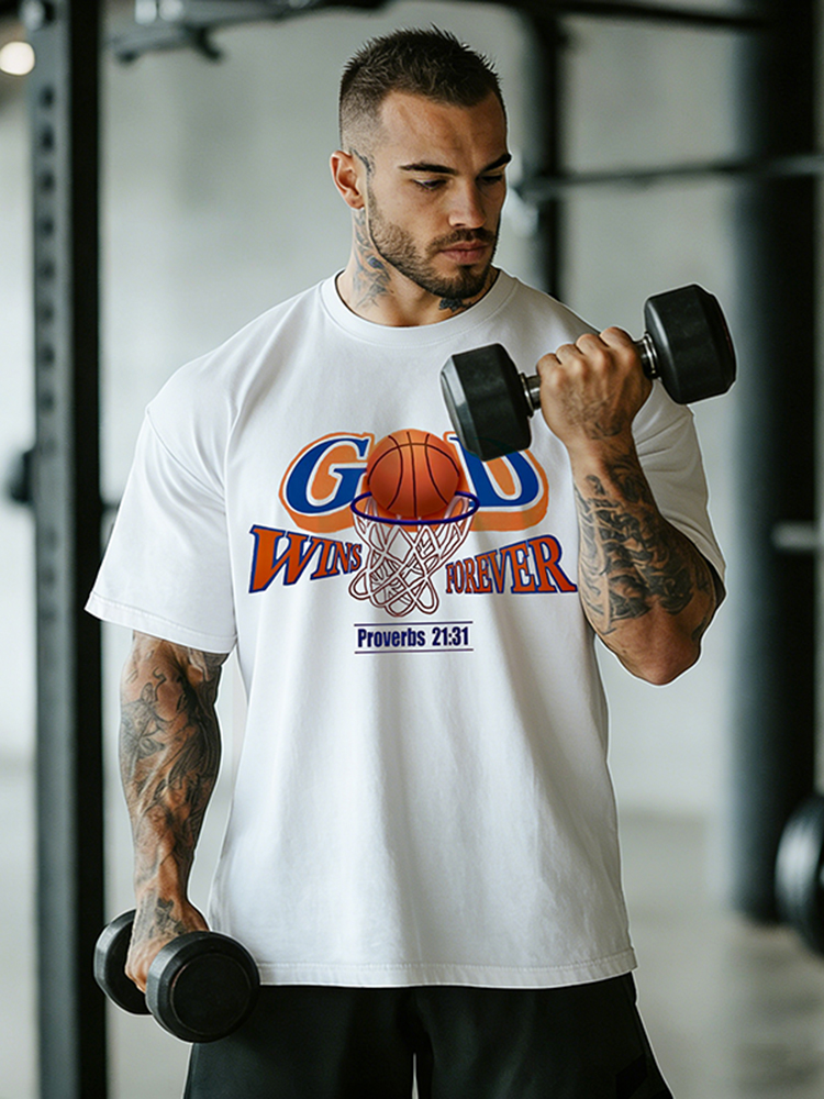 Pluslx God Wins Forever Basketball Graphic Cotton 220g Short Sleeved T-shirt