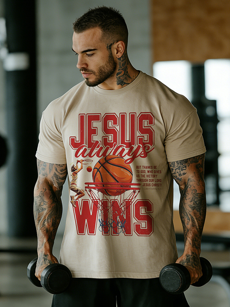 Pluslx Jesus Always Wins Basketball Graphic Cotton 220g Short Sleeved T-shirt