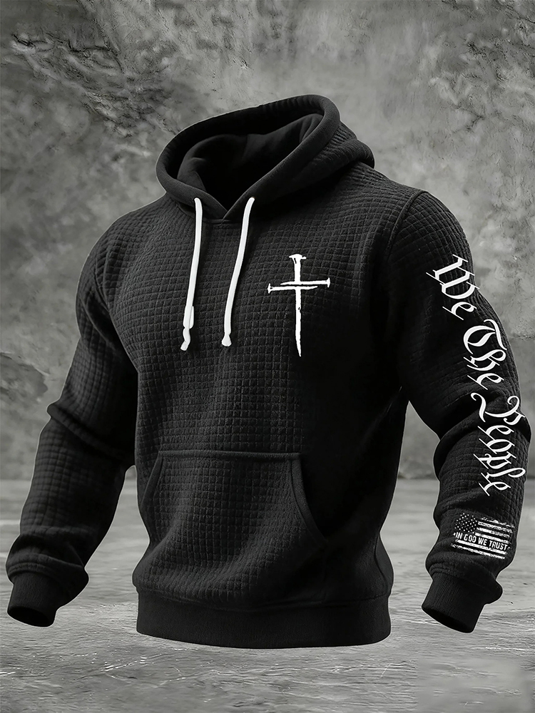 Pluslx Men's Vintage Faith Cross Western Style Flag Print Waffle Hoodie