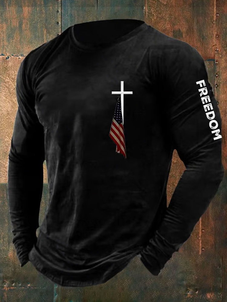 Men's Casual Freedom American Flag Print Long Sleeve T-shirt