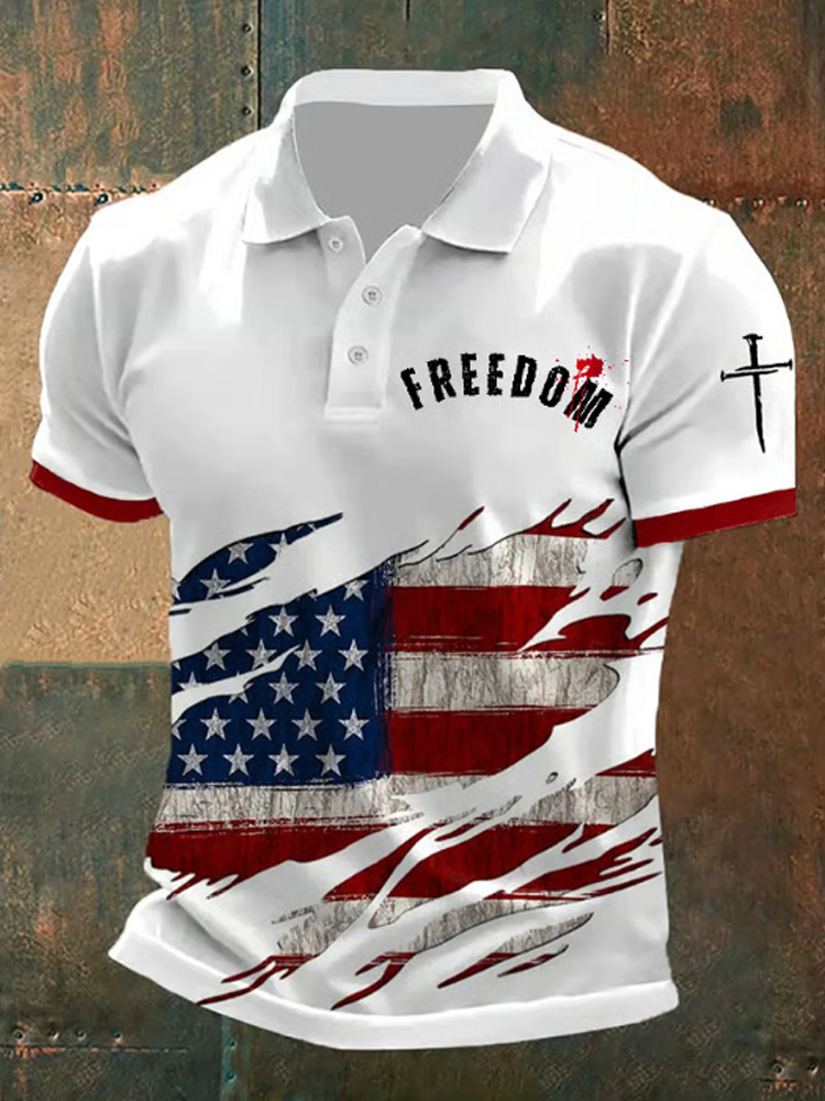 Men's Freedom American Flag Casual Printed Polo Shirt