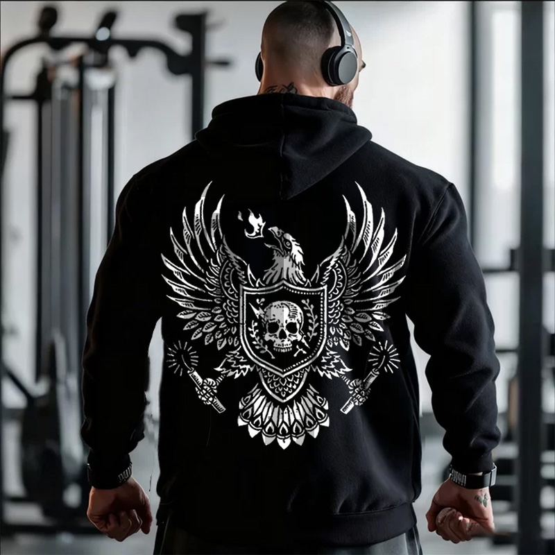 Pluslx Retro Gym Work Hard Eagle And Wolf Graphics Pocket Workout Hoodie