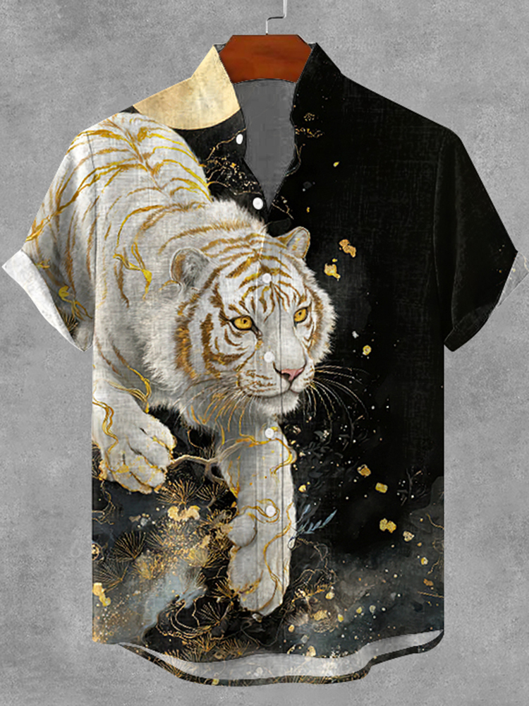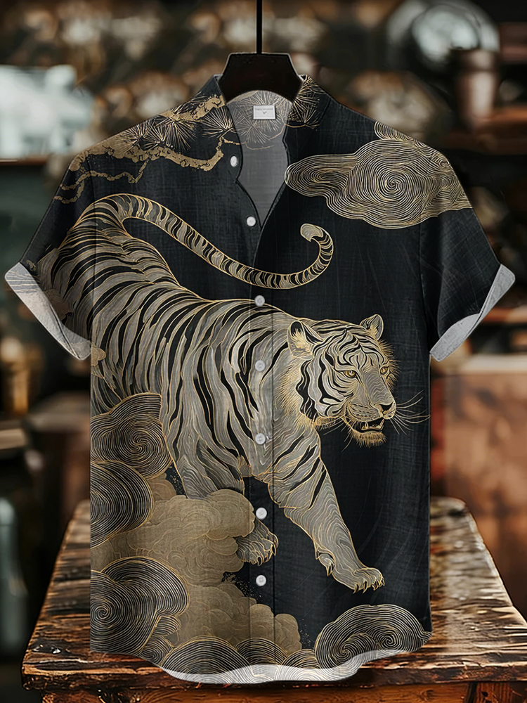 Pluslx Men's Vintage Tiger Japanese Art Print Casual Shirt