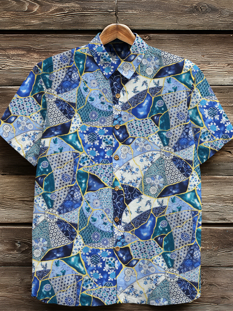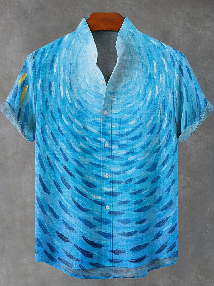 Pluslx Japanese-style Ocean Pattern Art Casual Shirt