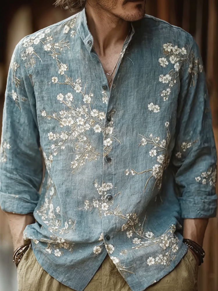 Pluslx Vintage Japanese Inspired Pattern Cozy Linen Shirt