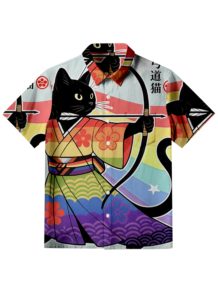 Pluslx Rainbow Kimono Cat Archery Aloha Japanese Button-up Shirt