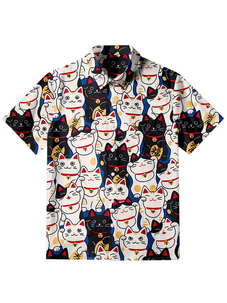 Pluslx Edo Period Lucky Cat Button-up Shirt