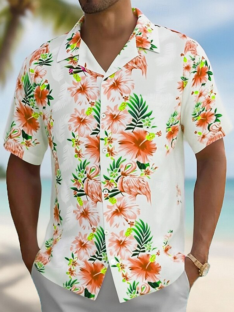 Pluslx Men's Flamingo Floral Print Summer Hawaiian Shirt