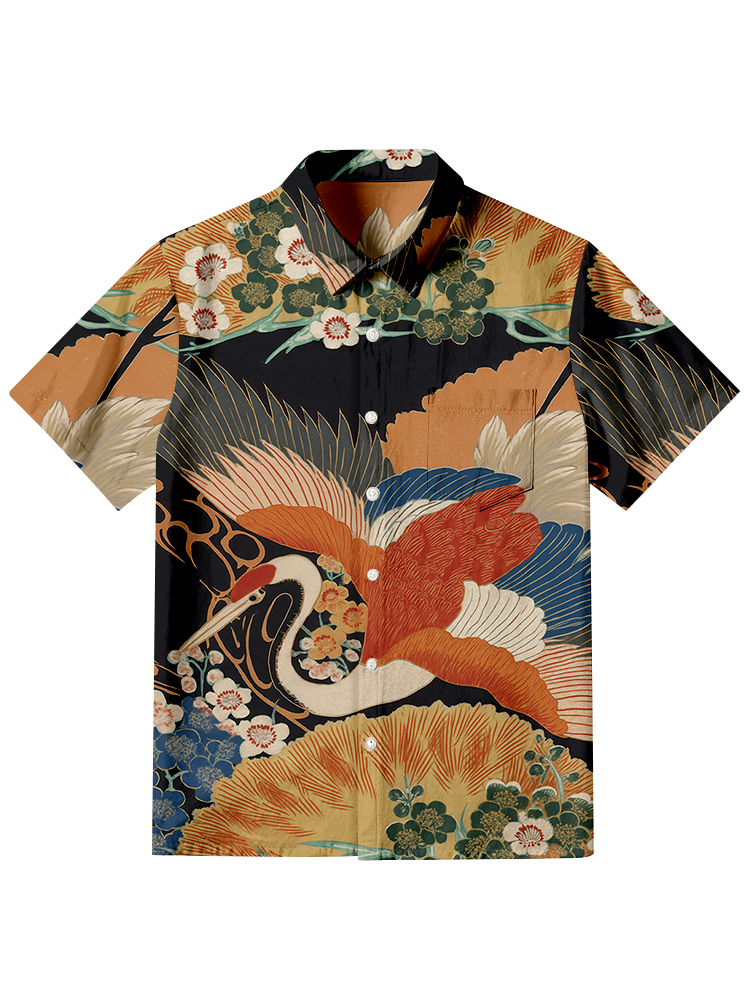 Pluslx Japanese Crane Flower Hawaiian Shirt